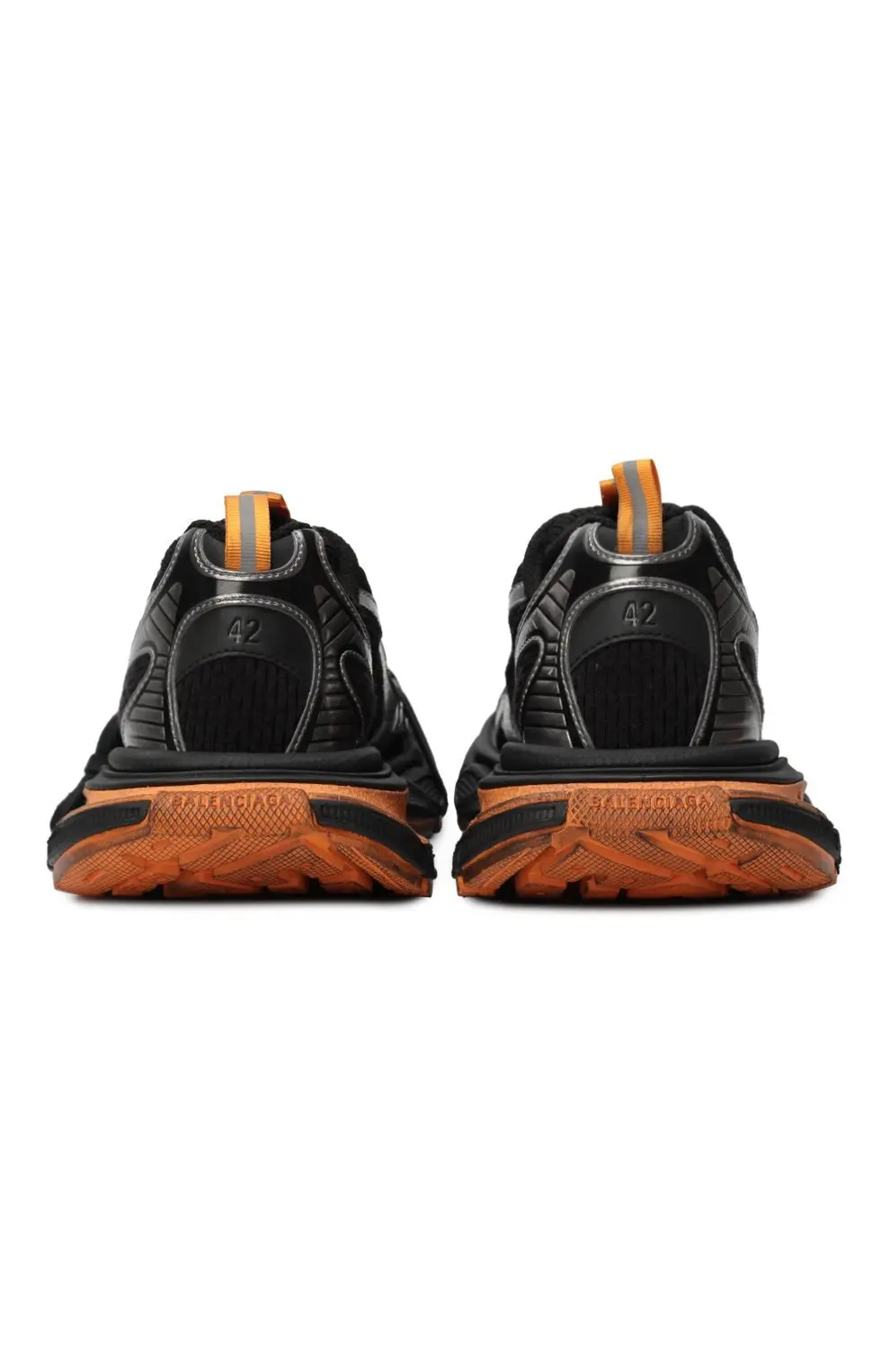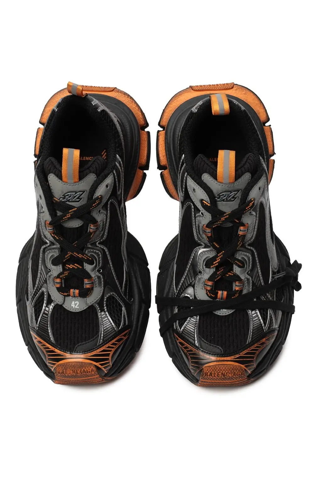 Кроссовки 3XL Balenciaga — эффектная модель в стиле спорт-шик, сочетающая технологичный дизайн и фирменную дерзость бренда. Верх выполнен из комбинации сетчатого текстиля и кожаных вставок в черно-серой гамме с яркими оранжевыми акцентами. Массивная подошва с износостойким протектором и эффектом «состаренности» подчеркивает характер oversize и обеспечивает устойчивость. Декоративные утолщенные шнурки и динамичные линии придают кроссовкам футуристичный вид. Это обувь для тех, кто ценит смелый уличный стиль и комфорт в каждом движении.