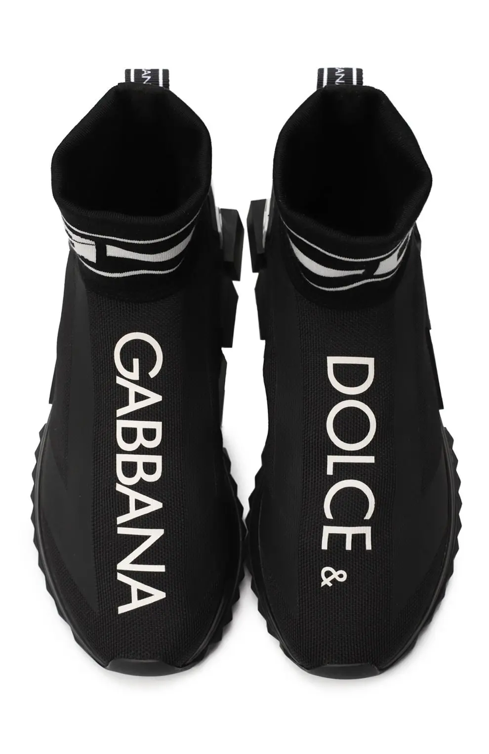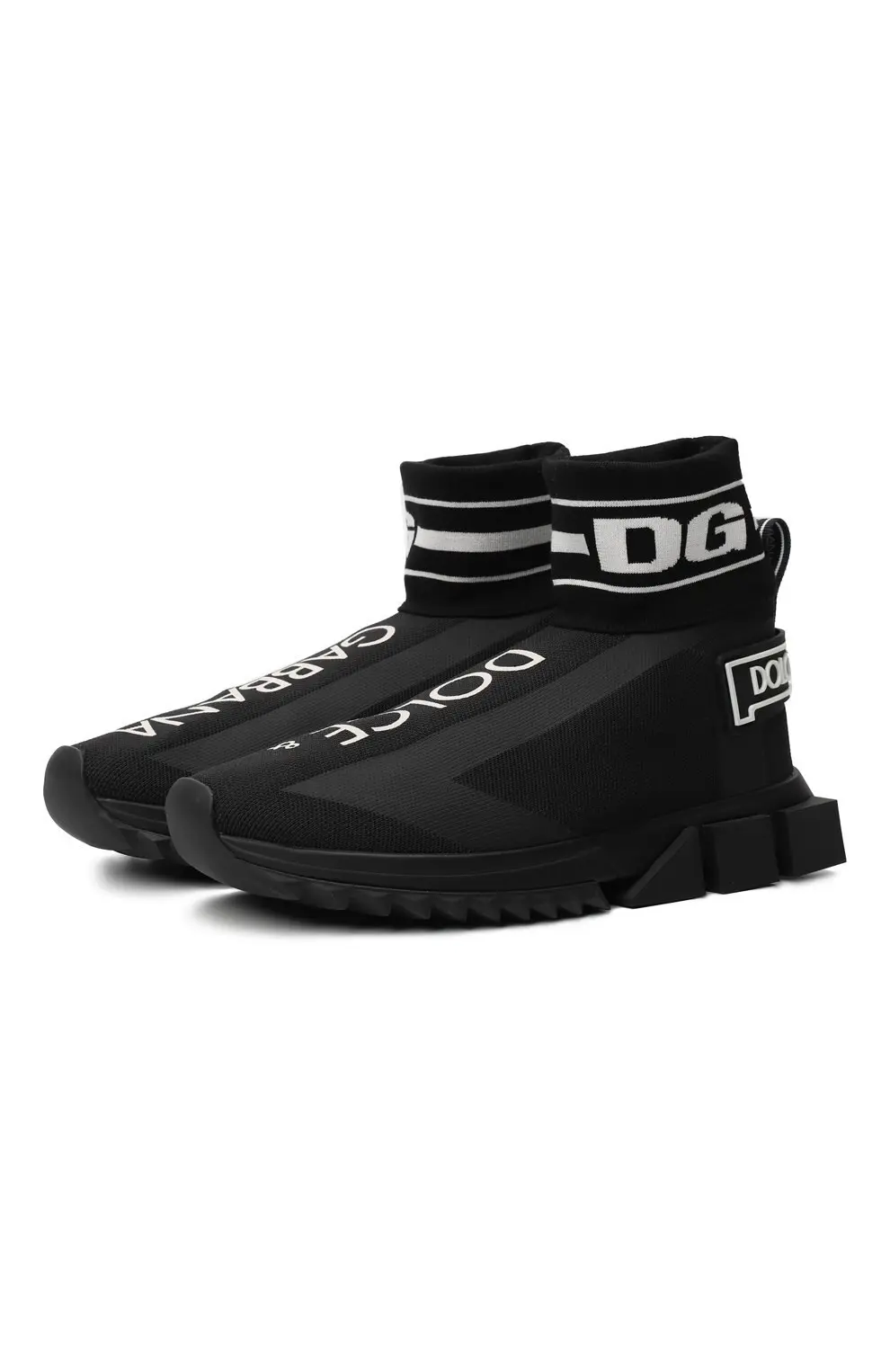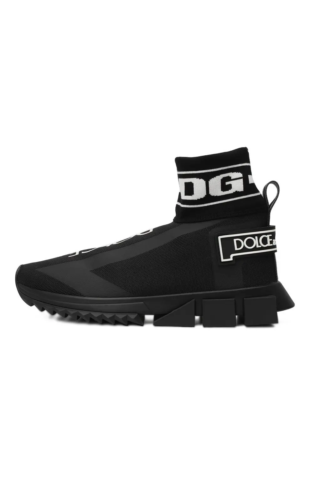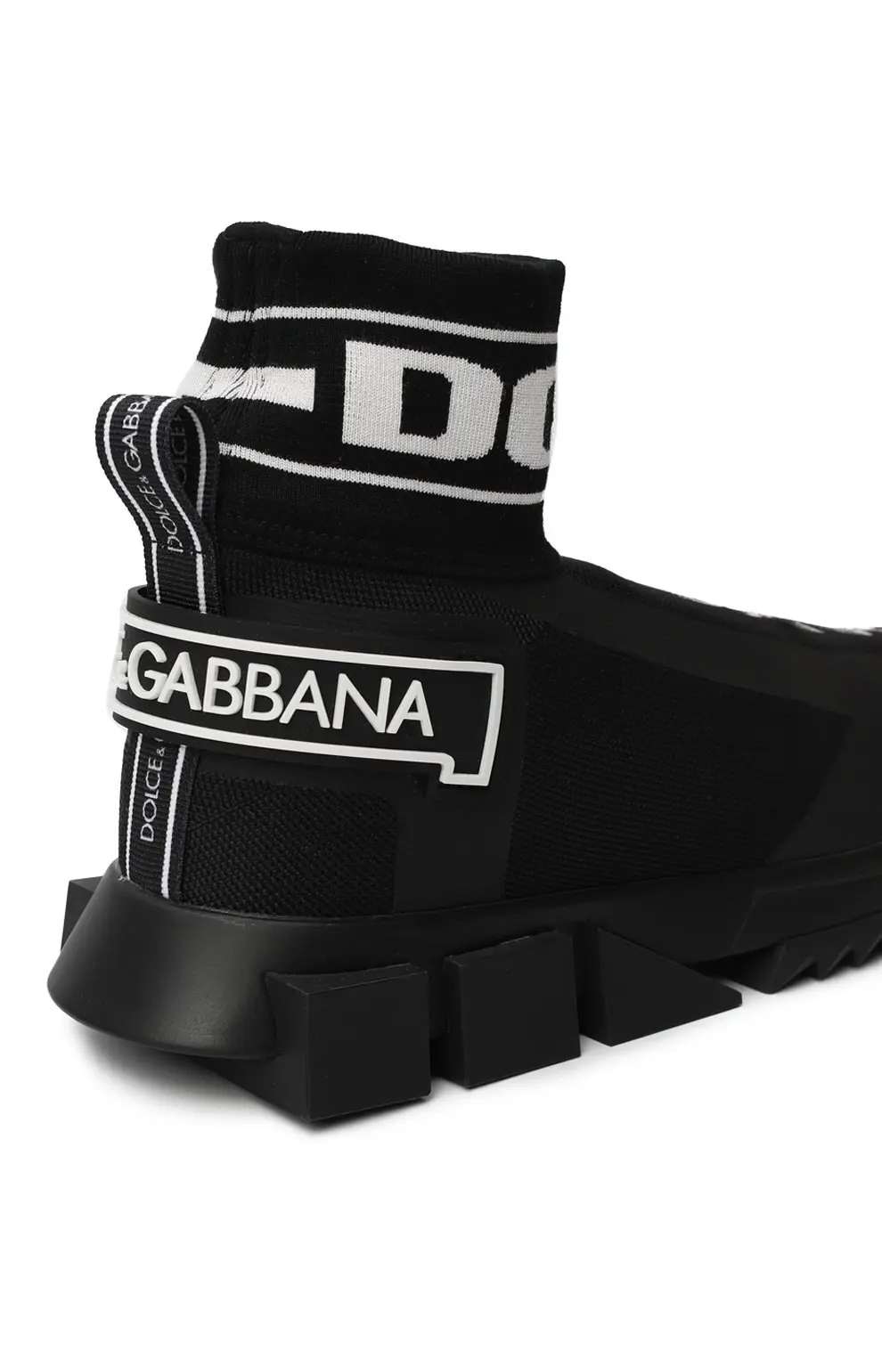 Кроссовки Sorrento от Dolce & Gabbana выполнены в современном урбанистическом стиле и отличаются легкостью благодаря эластичному текстильному верху в носочной технике. Контрастные логотипы бренда спереди и на манжете придают модели спортивный характер, а массивная подошва с геометрическим рельефом обеспечивает комфорт и надежное сцепление. Дизайн сочетает динамику, удобство и яркую фирменную эстетику, делая пару идеальным выбором для повседневных образов в городском ритме.