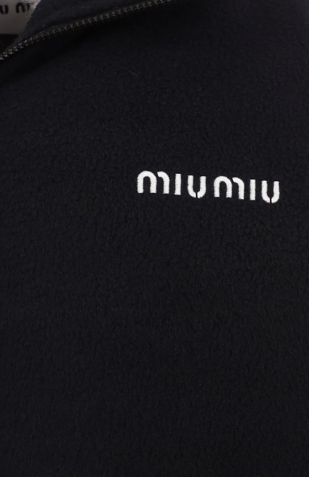 Пуховик выполнен из шерстяной ткани с мягкой фактурой. Модель прямого кроя с объёмным воротником из овчины обеспечивает комфорт и тепло. Застёжка на молнию и карманы на молнии подчёркивают функциональность, а логотип Miu Miu добавляет фирменный акцент. Лаконичный вариант для холодного сезона.