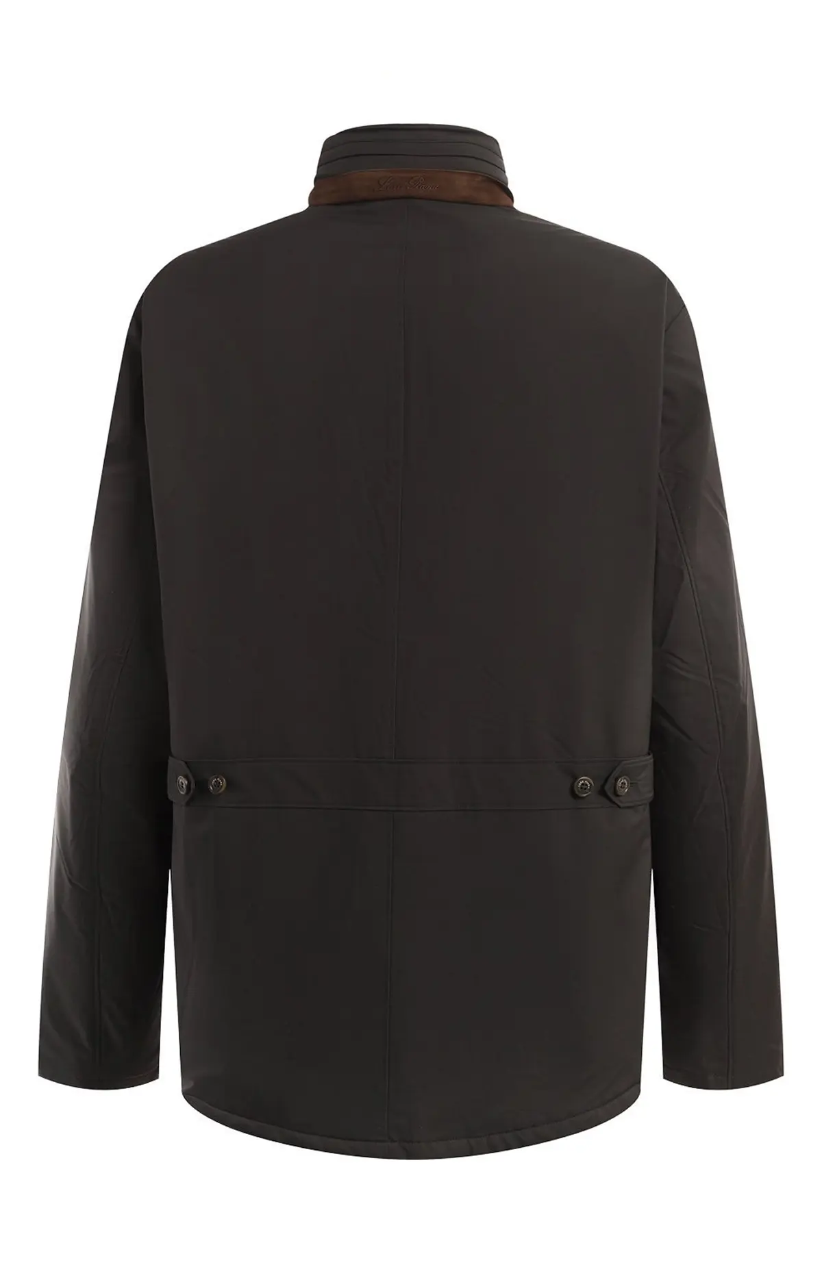 Куртка Loro Piana в чёрном цвете выполнена из водоотталкиваемой ткани с технологией защиты от ветра и дождя. Модель прямого кроя с воротником-стойкой, скрытой застёжкой и большими накладными карманами сочетает функциональность и минималистичный стиль. Идеальный выбор для повседневной носки в прохладный сезон.