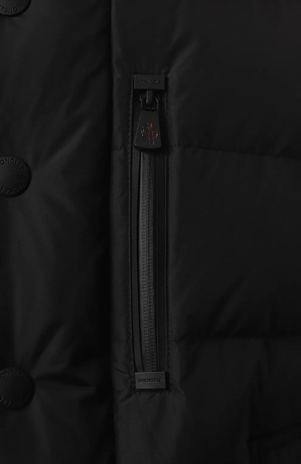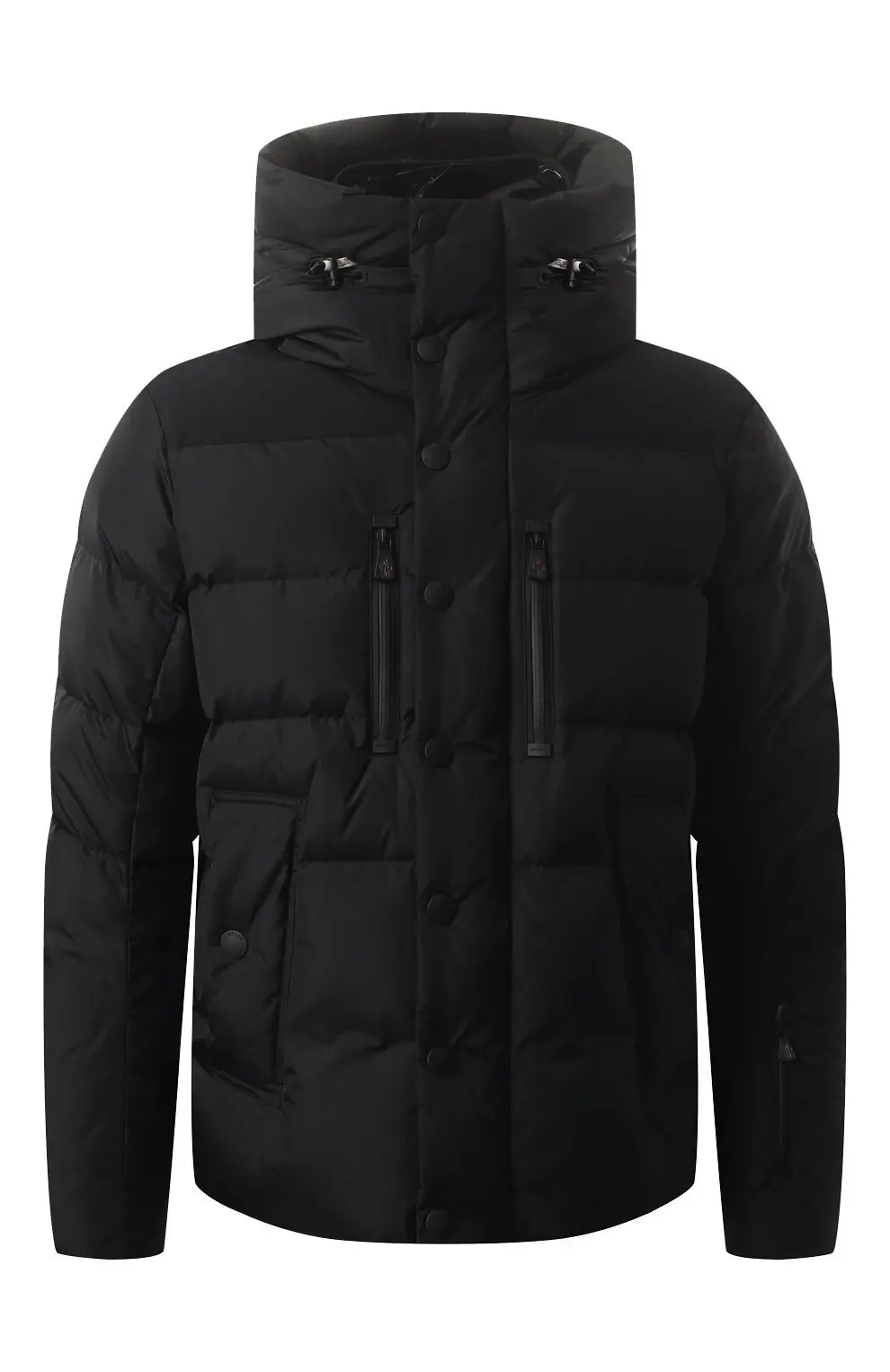 Пуховик Moncler из матового нейлона с плотной стёжкой и утеплителем из пуха. Модель с высоким воротником и функциональными карманами сочетает комфорт и современный минимализм.