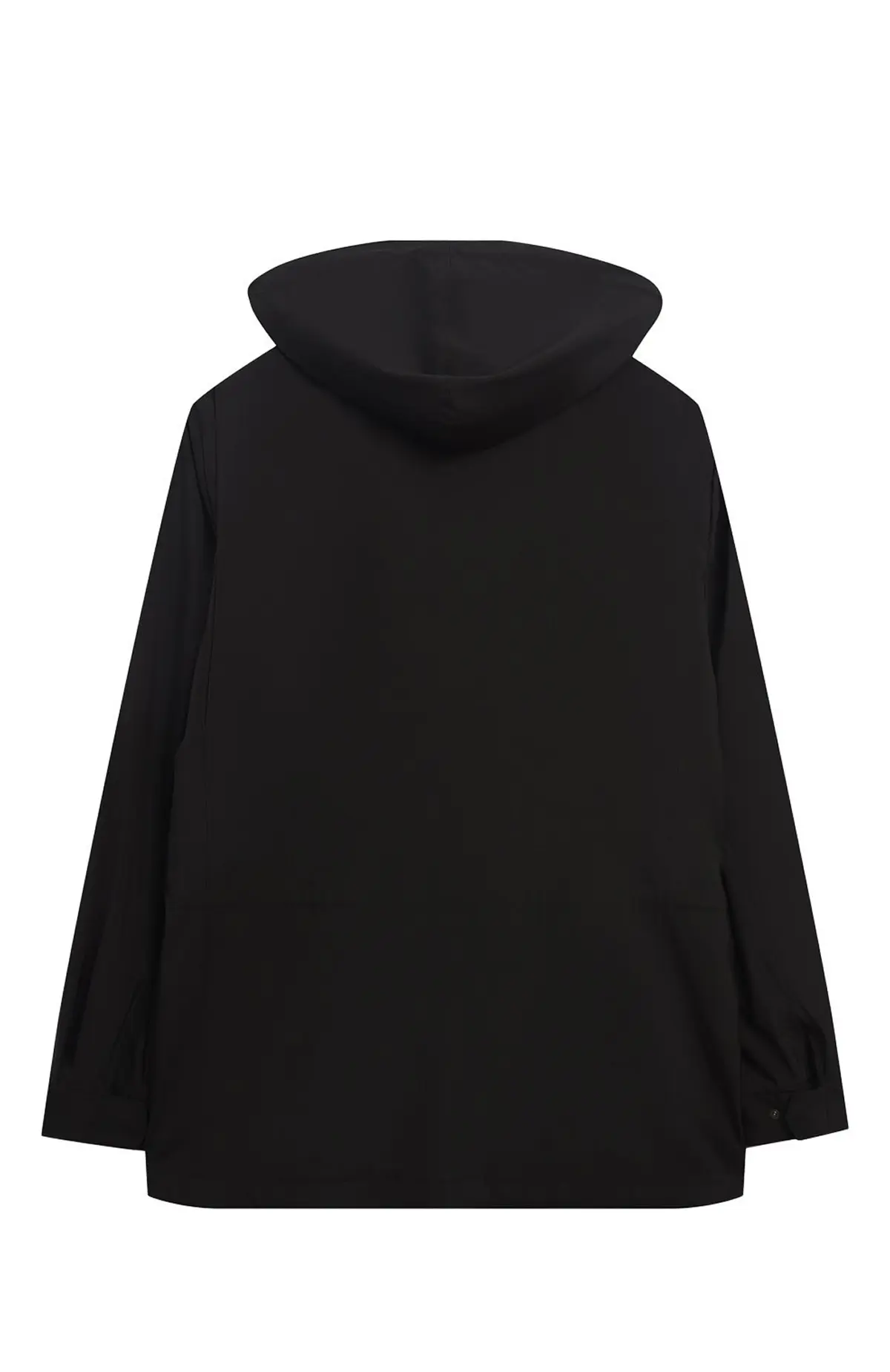 Черная куртка Loro Piana выполнена из технологичной водоотталкивающей ткани, обеспечивающей защиту от ветра и дождя. Модель с прямым кроем оснащена капюшоном, застёжкой на молнию с планкой и накладными карманами с клапанами, что придаёт ей практичность и современный городской стиль.