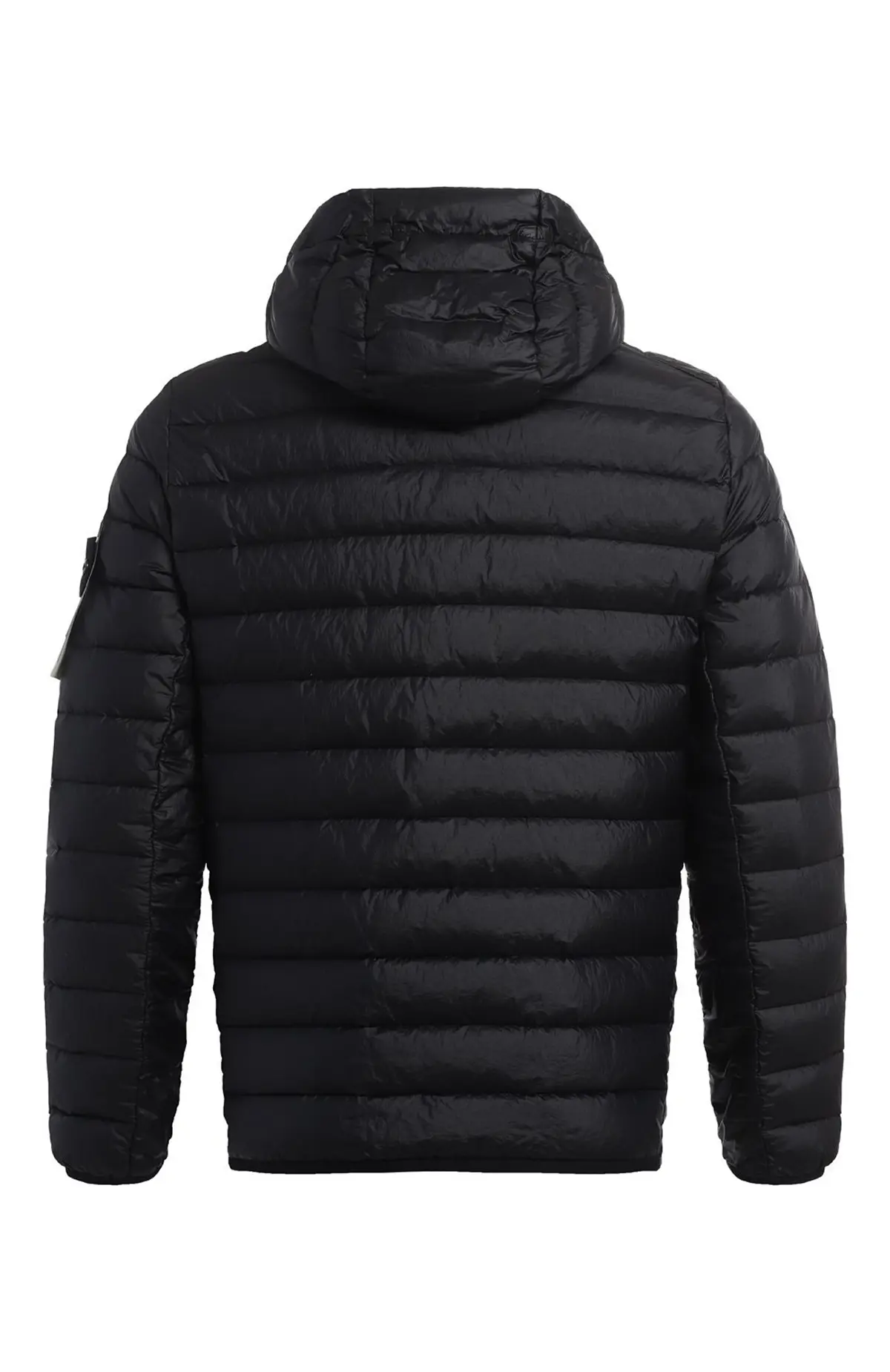 Пуховик прямого кроя выполнен из лёгкого материала с матовым блеском. Утеплённый пуховым наполнителем, он обеспечивает надёжную защиту от холода при минимальном весе. Капюшон с регулировкой и эластичная отделка по краям добавляют функциональности, а фирменная нашивка на рукаве завершает образ.