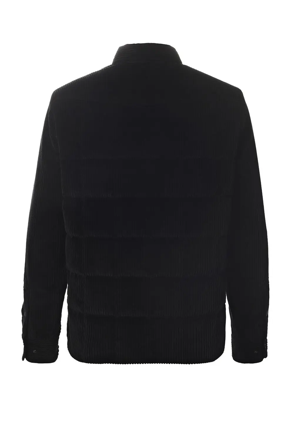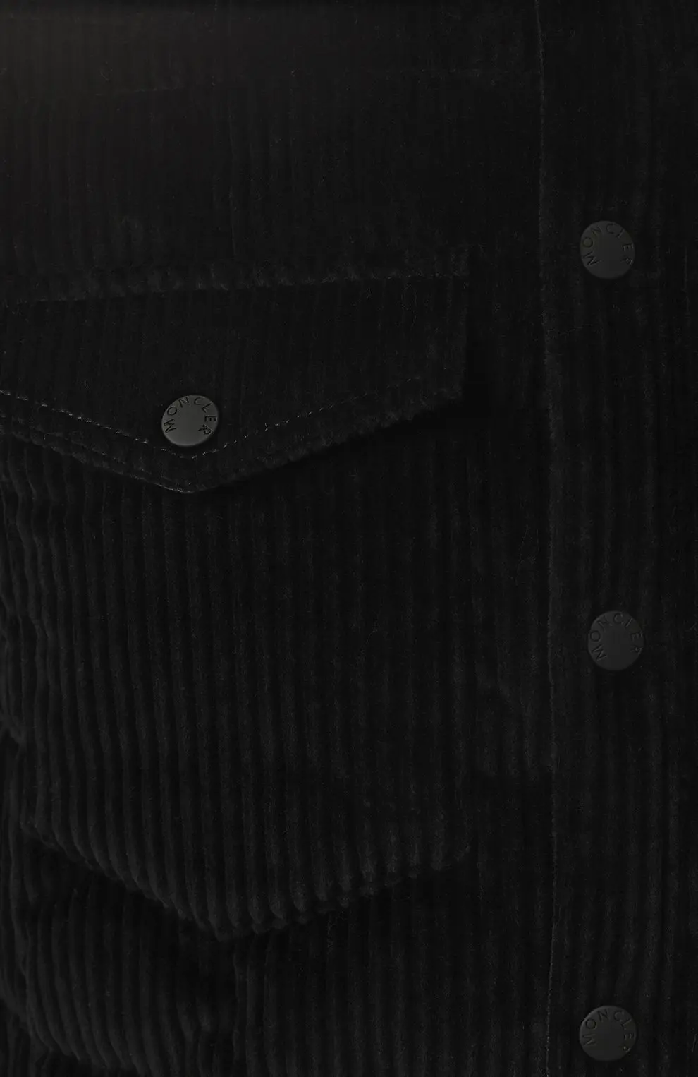 Куртка Moncler — стильная модель из черного вельвета с утепленной стежкой. Оснащена отложным воротником, нагрудными карманами с клапанами и застежкой на кнопки. Идеально сочетает классический силуэт и современный комфорт.