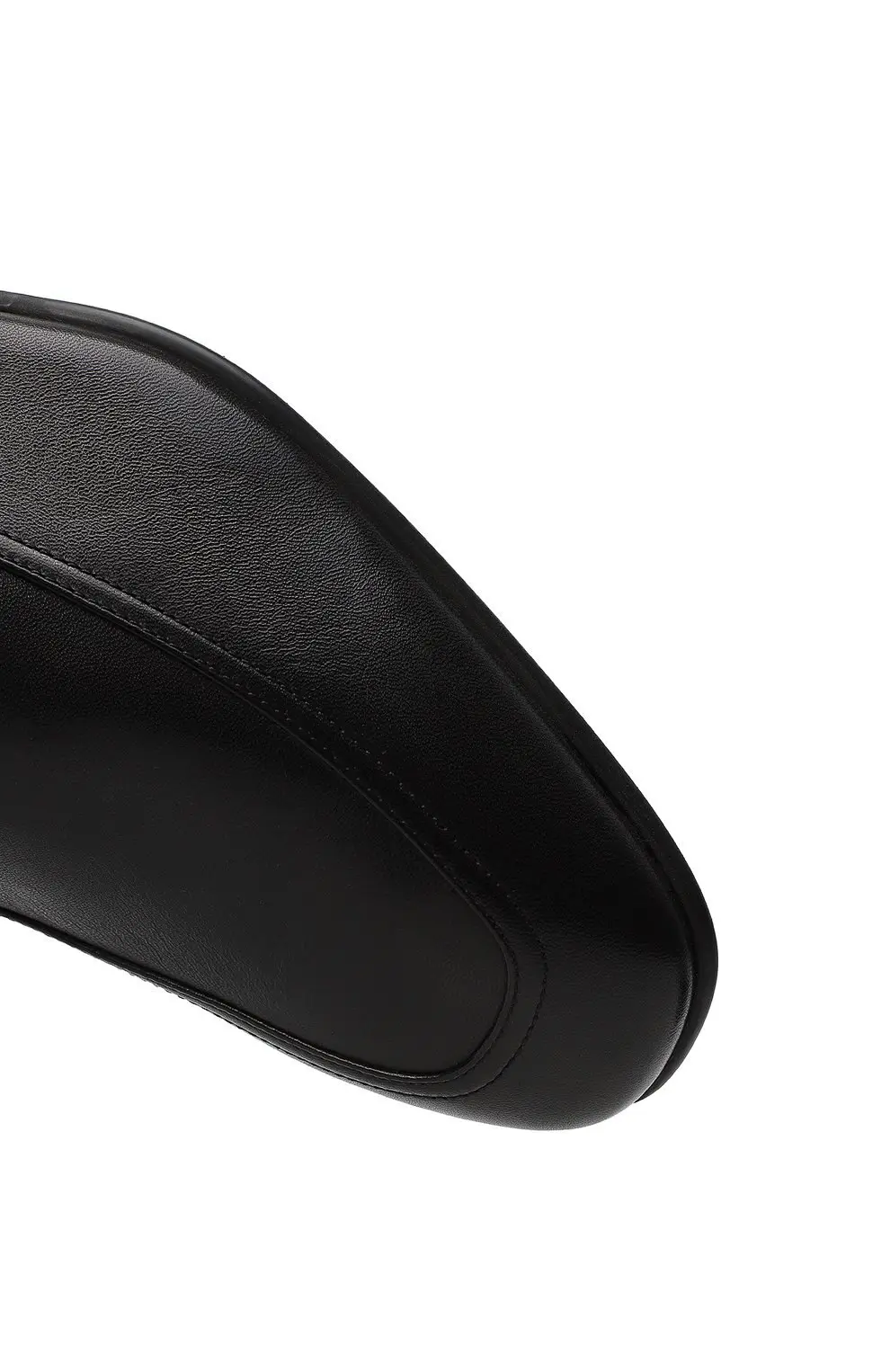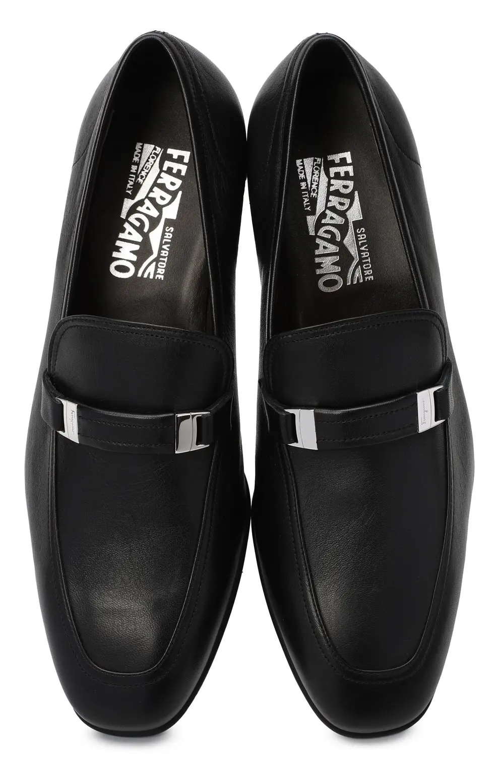 Лоферы Salvatore Ferragamo выполнены из гладкой чёрной кожи премиального качества. Элегантный силуэт с мягкими линиями дополнен фирменной металлической деталью Gancini на перемычке. Подошва из прочной кожи и внутренний кожаный слой обеспечивают комфорт при носке. Универсальная пара для безупречного делового или вечернего образа.