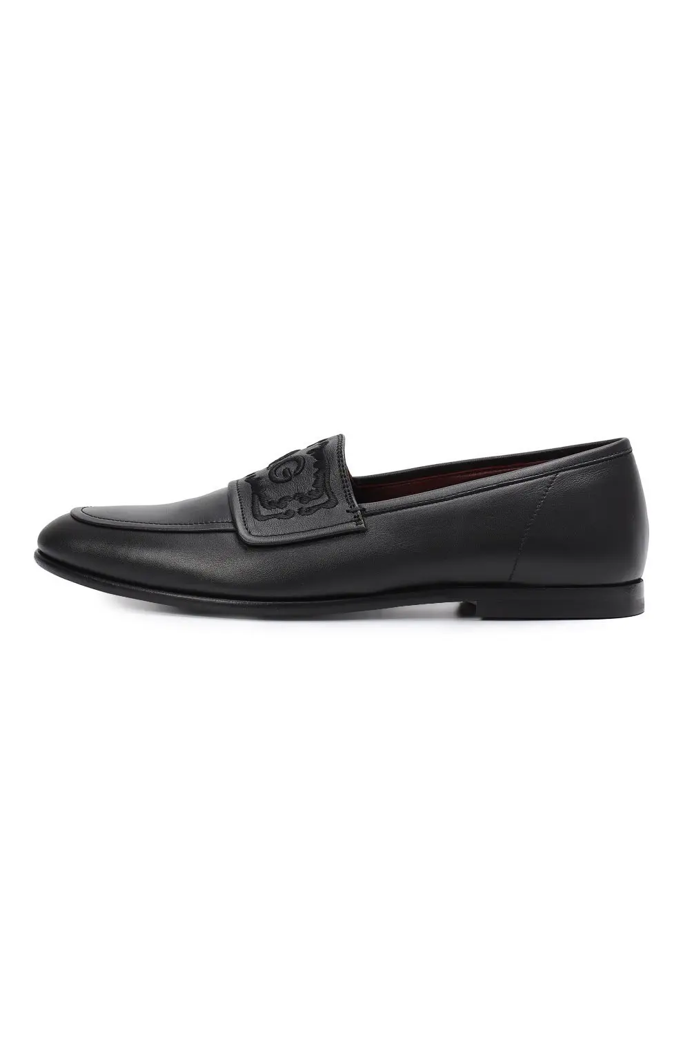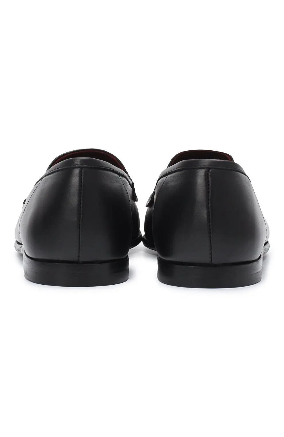 Лоферы выполнены из гладкой чёрной кожи с лёгким блеском. Классический силуэт дополнен аккуратным кантом и устойчивой подошвой, обеспечивающей комфортное прилегание. Модель отличается безупречной отделкой и лаконичным дизайном, подчеркивающим утончённый характер образа.