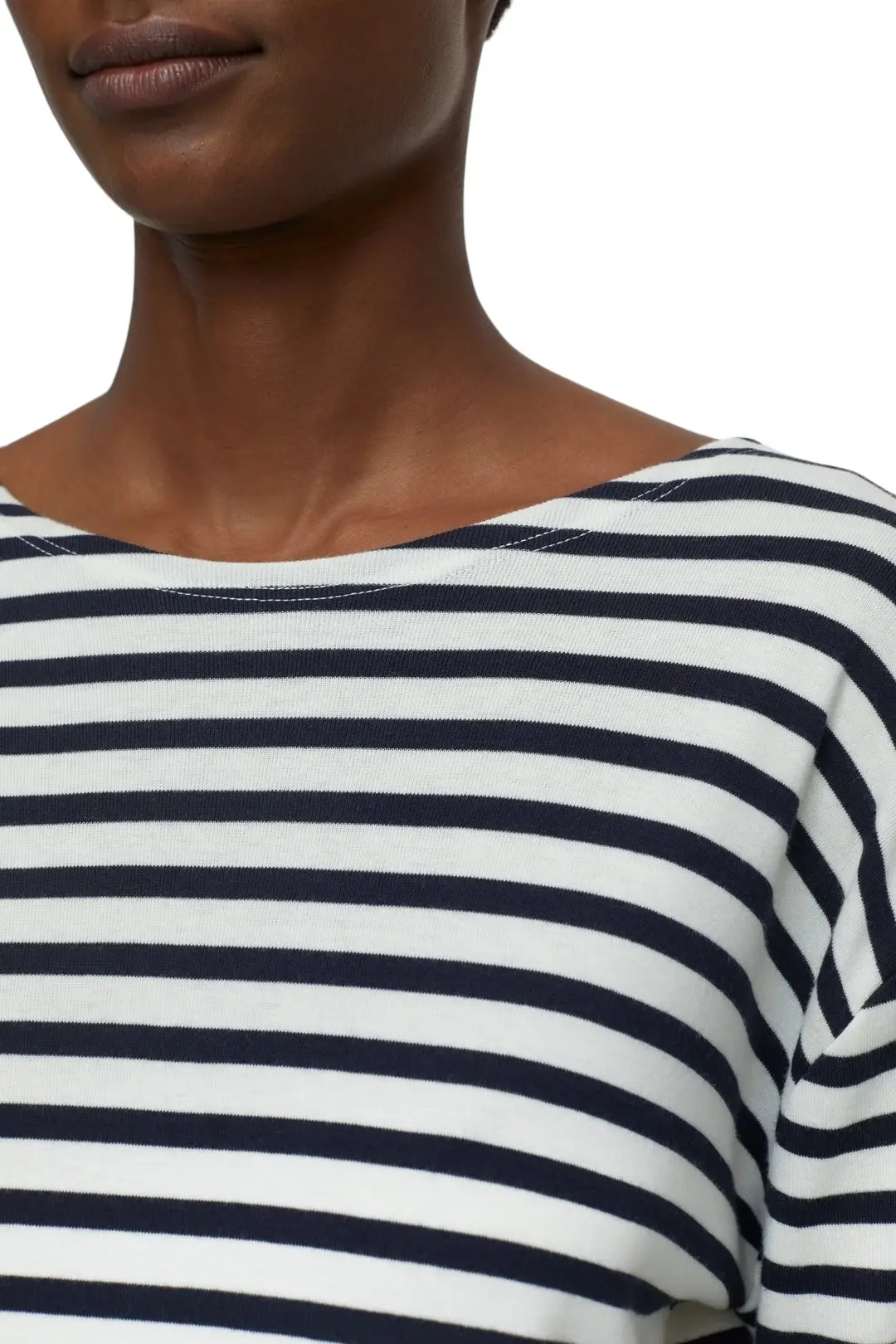 Лонгслив Closed в полоску сделан из очень мягкой смеси хлопка и модала. Тонкий ребристый трикотаж изделия имеет заниженную линию плеч. У модели классический круглый вырез и прямой низ. Комфортный вариант для вечерних выходов и прогулок подойдет для ношения с макси-юбкой или джинсами из коллекции бренда.