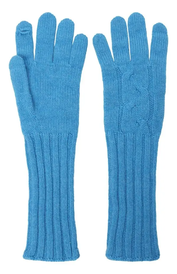 Перчатки Loro Piana из кашемира выполнены в ярко-голубом оттенке. Удлинённый фасон с резинкой и узором «косы» создаёт уютный и элегантный образ, обеспечивая тепло и комфорт в холодное время года.