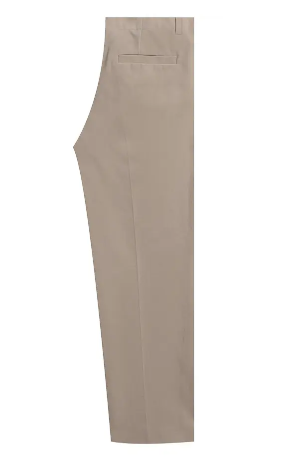 Брюки прямого кроя выполнены из мягкого хлопка с гладкой фактурой. Лёгкий материал обеспечивает комфорт и свободу движений. Чёткие стрелки визуально удлиняют силуэт, придавая образу аккуратный и современный вид.