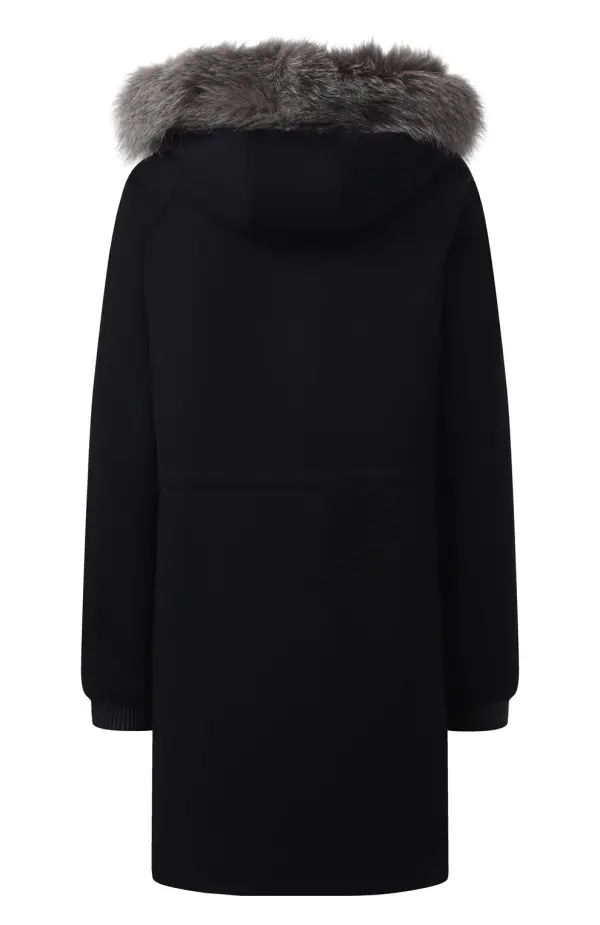 Эта изысканная парка от Loro Piana выполнена из мягкой кашемированной ткани, которая отличается благородной текстурой и превосходной терморегуляцией. Классический прямой силуэт дополняется удобным капюшоном, украшенным роскошной меховой отделкой, придающей образу элегантность и женственность. Скрытая застёжка и аккуратные боковые карманы подчеркивают минималистичный стиль модели, а универсальный тёмный оттенок делает её идеальным выбором для любых повседневных и городских образов в холодное время года.