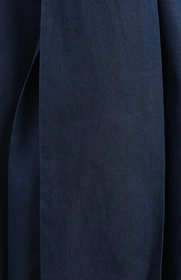 Хлопковое платье Loro Piana в насыщенном синем оттенке выполнено из легкой и дышащей ткани. Модель в стиле рубашки с акцентом на талии благодаря широкому поясу подчеркивает фигуру, сохраняя при этом расслабленную элегантность. Отложной воротник и укороченные рукава придают образу лаконичный, современный характер — идеальный выбор для повседневного шика.