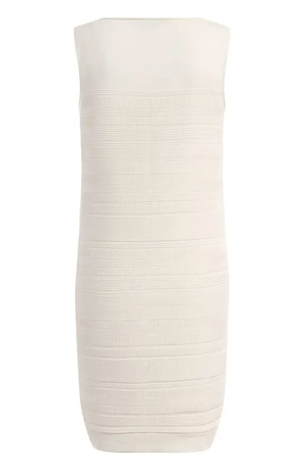 Платье Loro Piana из шелка и хлопка — воплощение минимализма и изысканности. Модель без рукавов выполнена в мягком кремовом оттенке с деликатной текстурой в виде горизонтальных полос, создающих лёгкий рельеф. Приталенный силуэт подчёркивает фигуру, а натуральные волокна обеспечивают комфорт и приятные тактильные ощущения. Элегантное и универсальное платье идеально подходит как для дневных образов, так и для вечерних выходов.