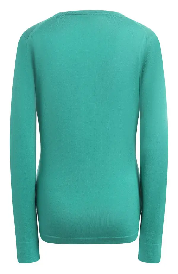 Пуловер Loro Piana из шелка и хлопка выполнен в ярком бирюзовом оттенке. Лаконичный фасон с круглым вырезом и длинными рукавами делает модель универсальной и удобной. Мягкая, легкая ткань сочетает шелковистый блеск и дышащие свойства хлопка, обеспечивая комфорт и безупречный внешний вид. Этот пуловер идеально подойдет для создания свежего, утончённого образа в повседневном и деловом стиле.