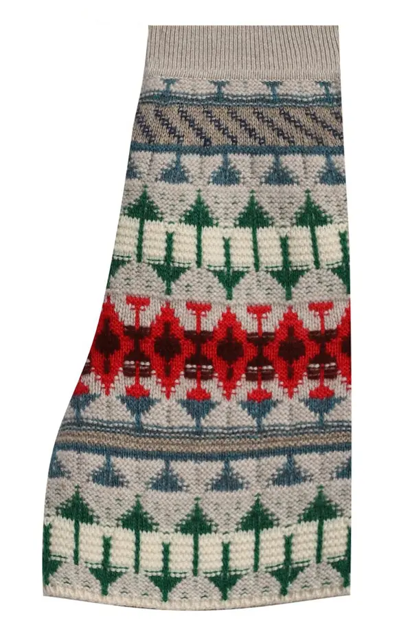 Шорты выполнены из мягкого кашемира с объёмной фактурной вязкой. Многоцветный геометрический узор придаёт модели выразительность и уютный характер. Эластичный пояс обеспечивает комфортную посадку, а укороченный крой подчёркивает расслабленный силуэт.