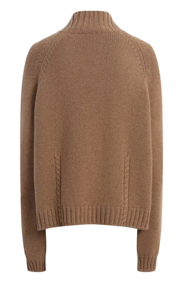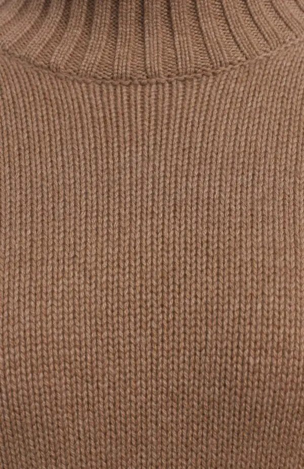 Кашемировый свитер Loro Piana выполнен из мягчайшего кашемира высшего качества в благородном карамельном оттенке. Модель с высоким воротником и фактурной вязкой по бокам сочетает лаконичный дизайн и непревзойденный комфорт. Идеален для создания утончённых образов в духе повседневной элегантности бренда.