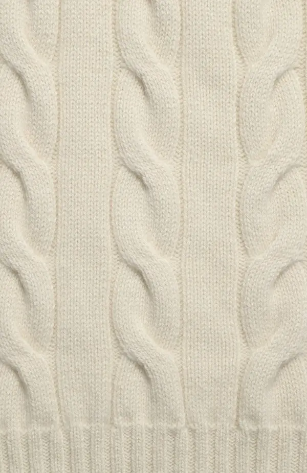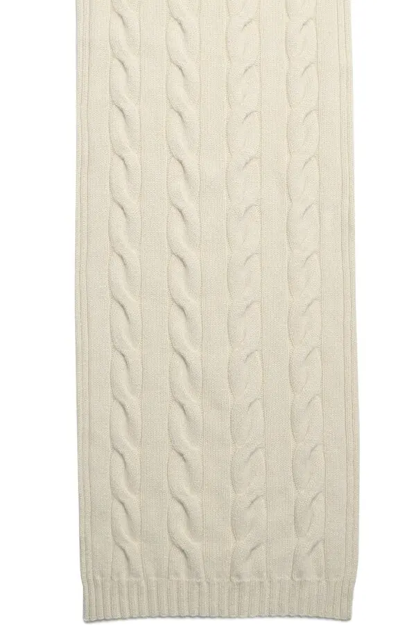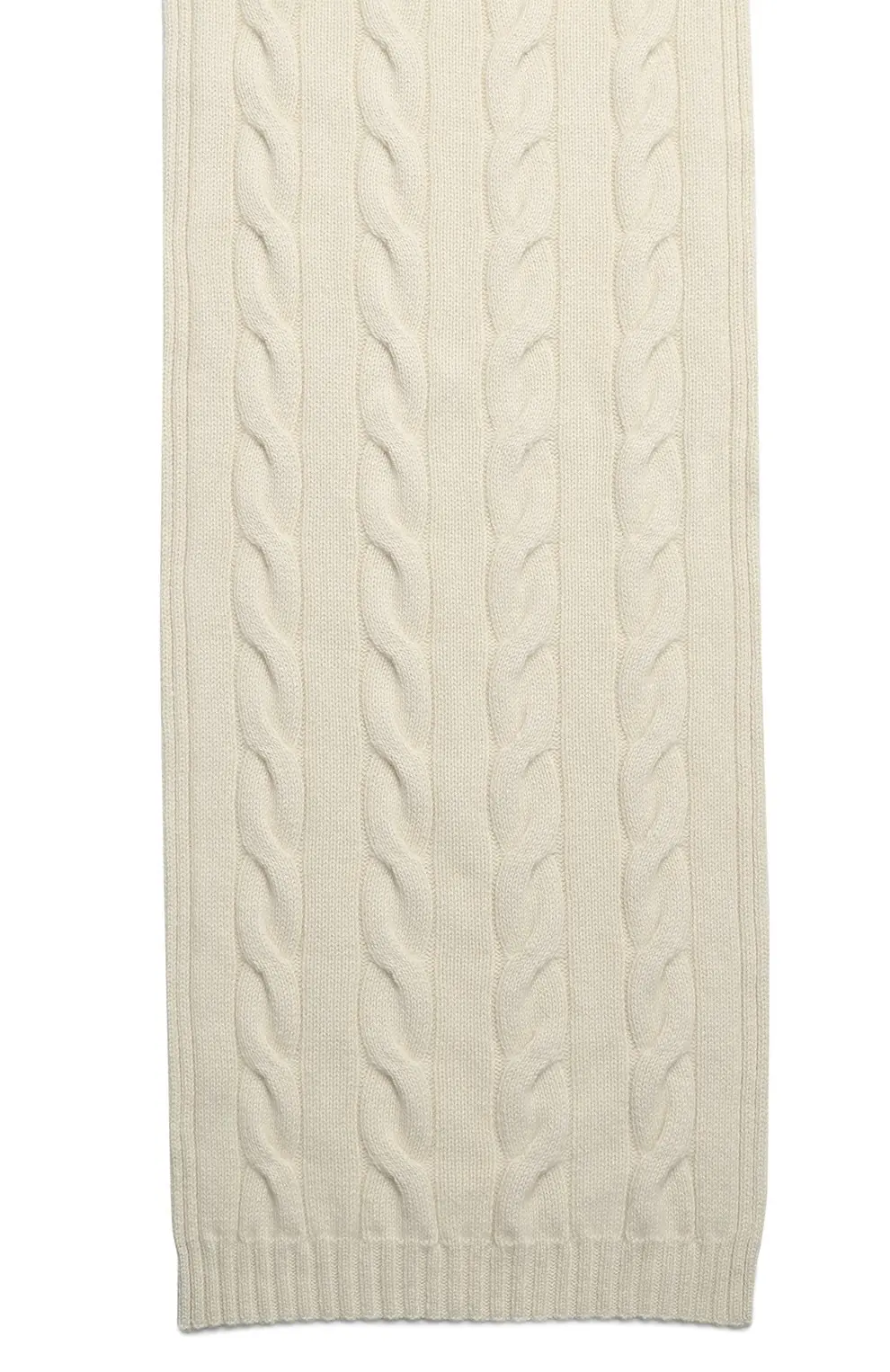 Шарф Loro Piana из кашемира в молочном оттенке выполнен объемной вязкой с узором «косы». Мягкий и теплый аксессуар с эластичными краями станет элегантным дополнением к зимнему образу, сочетая комфорт и безупречный стиль бренда.