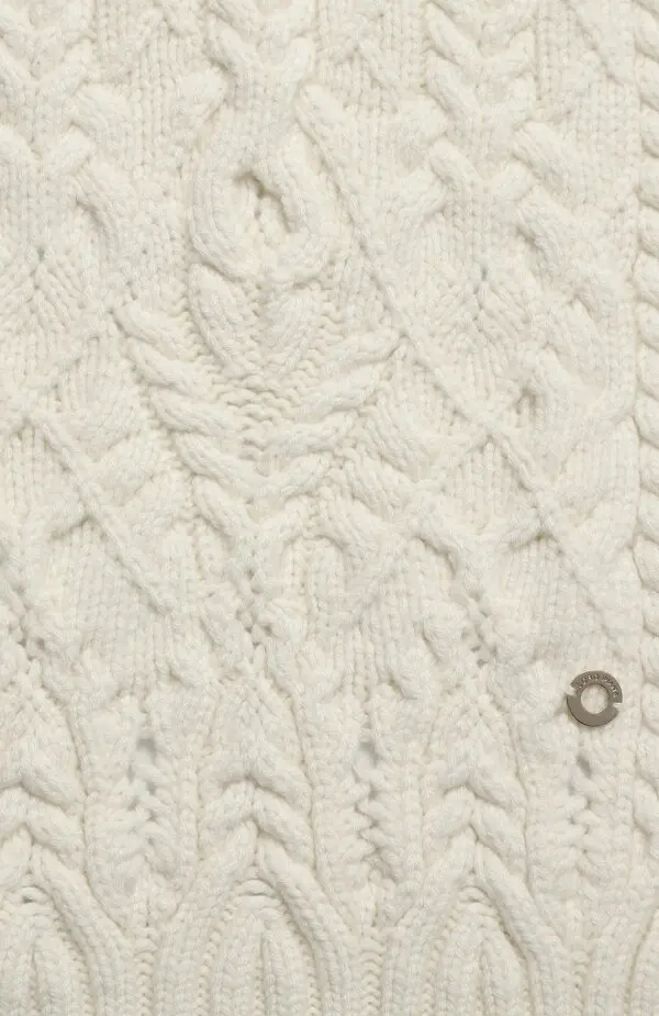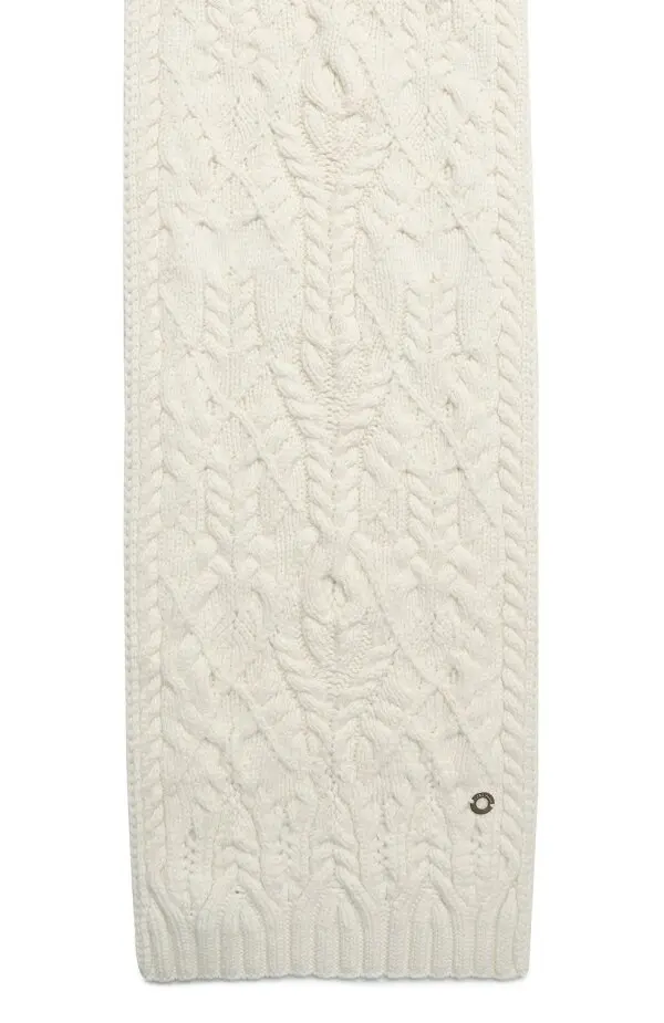 Loro Piana шарф из кашемира в молочном оттенке. Украшен объемным вязаным узором с косами, отличается мягкой фактурой и теплом. Классический аксессуар премиум-класса для холодного сезона.