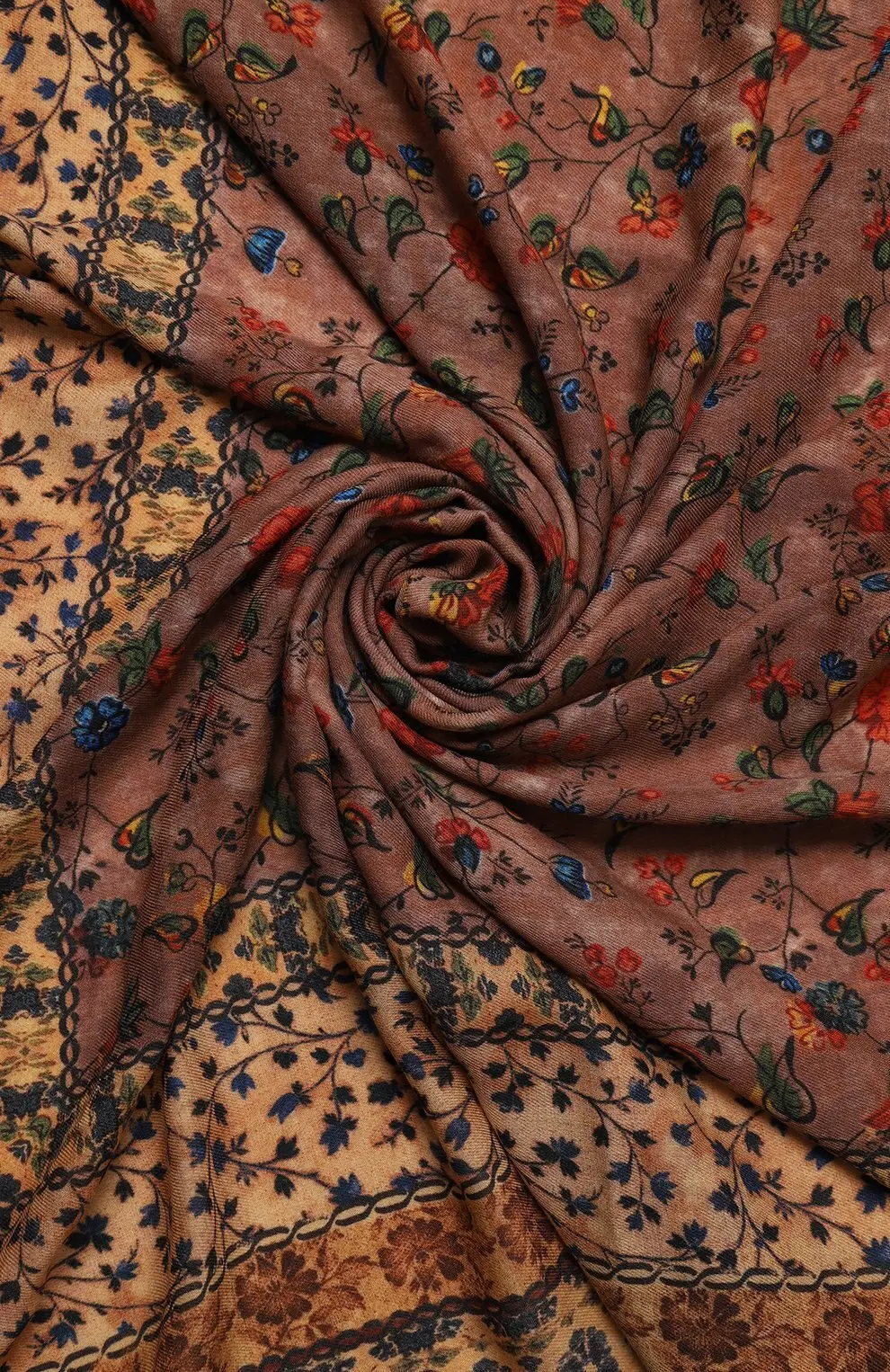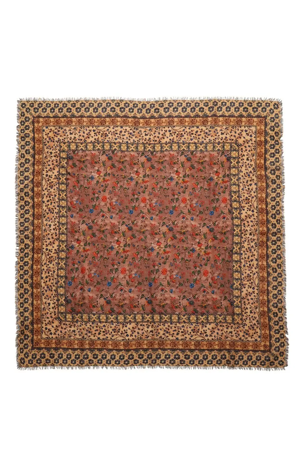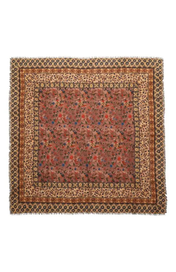 Платок Loro Piana из шерсти с богатым орнаментом и цветочным рисунком в теплой гамме. Лёгкая фактура и изысканный принт делают его стильным акцентом в любом образе, а мягкая шерсть обеспечивает комфорт и уют в прохладное время года.