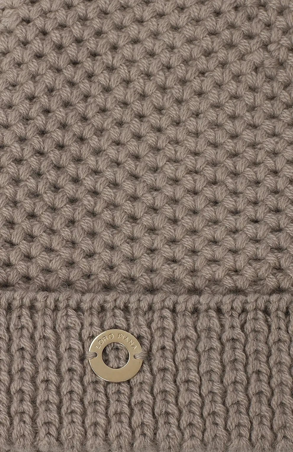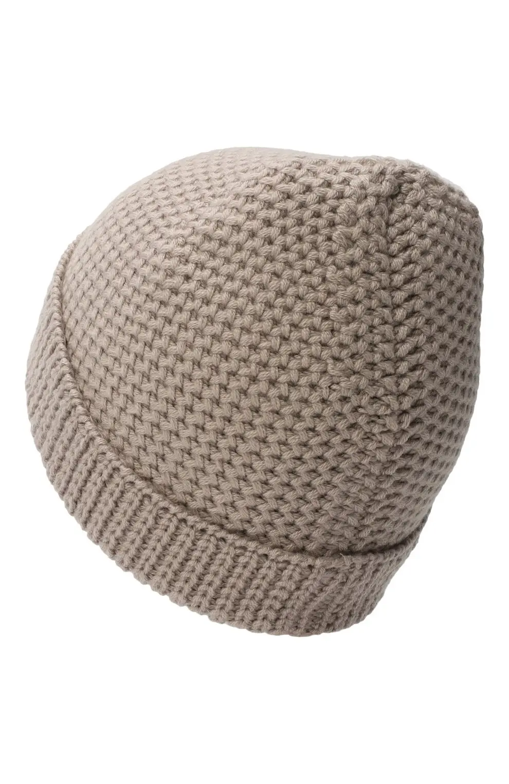 Шапка выполнена из мягкого кашемира с плотной фактурой крупной вязки, которая надёжно сохраняет тепло и обеспечивает комфортное прилегание. Объёмный отворот формирует аккуратный силуэт и подчёркивает повседневный характер модели. Деликатная металлическая деталь сбоку добавляет изделию сдержанный акцент.