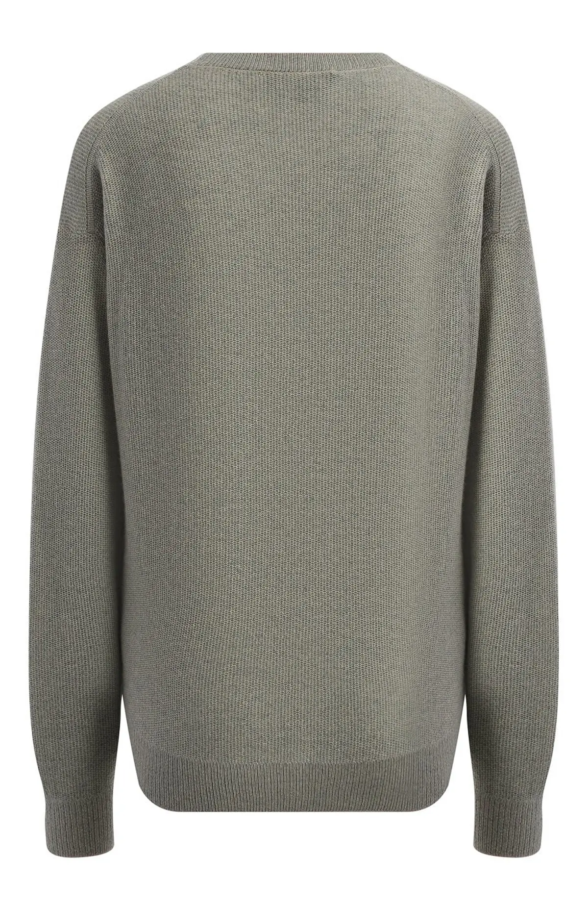 Пуловер свободного кроя выполнен из мягкого кашемира редкого качества. Материал отличается шелковистым блеском и исключительной нежностью на ощупь. Рельефная вязка и лаконичный силуэт создают утончённый образ с акцентом на комфорт и сдержанную элегантность.