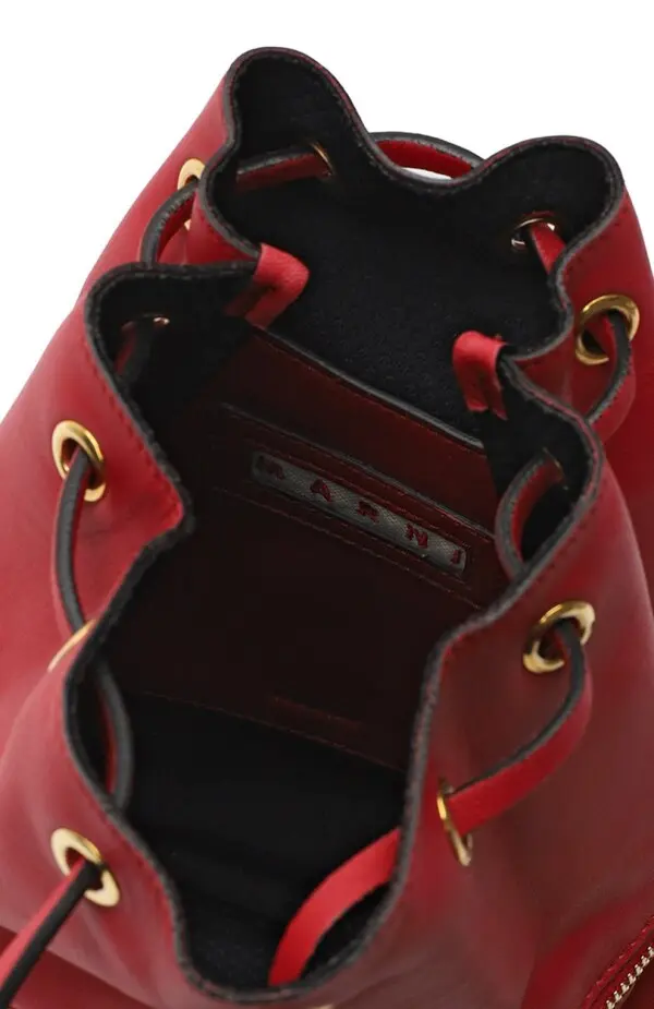 Рюкзак от Marni в ярко-красном цвете создан для тех, кто ценит практичность и выразительный стиль. Изготовленный из мягкой кожи, он сочетает в себе современный дизайн и функциональность. Модель выполнена в форме мешка с регулируемой кулиской и дополнена удобной внешней молнией с фирменными кожаными пуллерами, что облегчает организацию пространства. Золотистая фурнитура придаёт изделию утончённый акцент, а вместительный силуэт делает его идеальным выбором для динамичных городских будней.