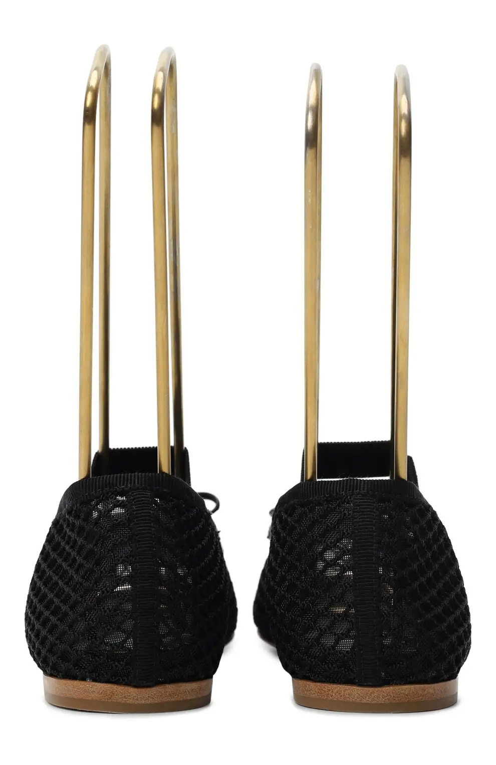 Балетки выполнены из мягкой сетчатой ткани, создающей лёгкий полупрозрачный эффект. Эластичный ремешок с логотипом фиксирует стопу и добавляет современное звучание классической форме. Миниатюрный бант завершает образ, придавая модели изящный и женственный акцент.