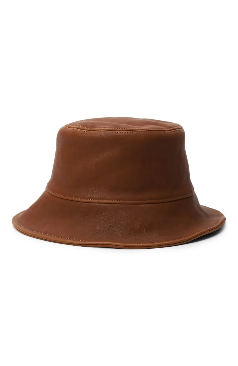 Эффектная панама выполнена из мягкой натуральной кожи тёплого коричневого оттенка. Минималистичный дизайн украшен тиснённым логотипом Miu Miu на боковой части. Благодаря фактуре кожи головной убор смотрится стильно и необычно, сочетая спортивный силуэт с премиальными материалами. Подходит как для повседневных образов, так и для смелых модных акцентов.