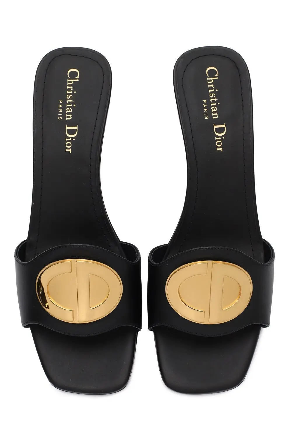 Мюли Forever Dior выполнены из гладкой черной кожи и дополнены широким ремешком с крупной золотистой пряжкой в форме буквы «D», которая придает модели изысканный акцент. Удобный средний каблук цилиндрической формы и открытый мыс делают пару элегантным решением для летнего гардероба. Эти мюли подчеркивают безупречный стиль Дома Dior, сочетая утонченность и комфорт.