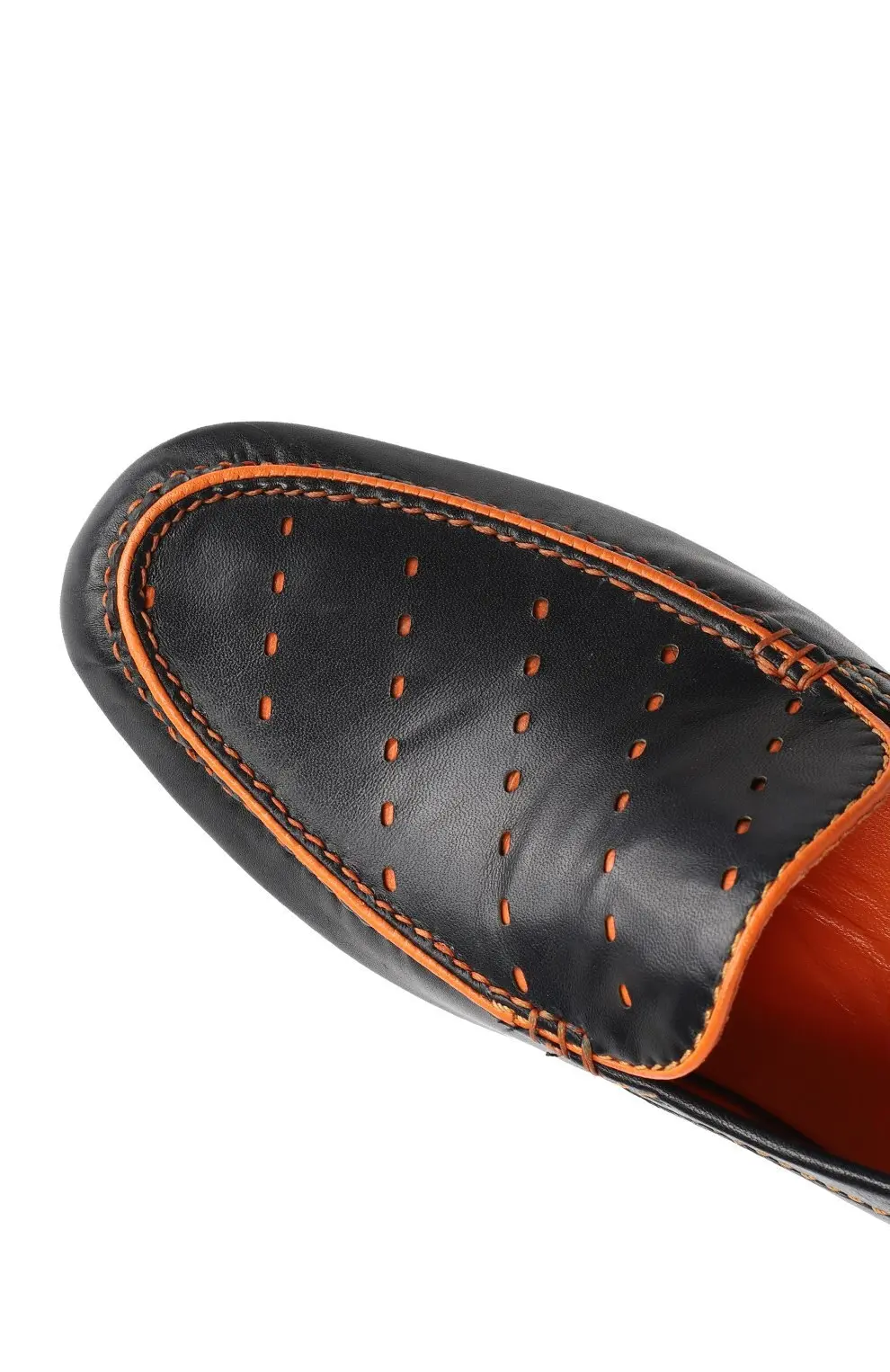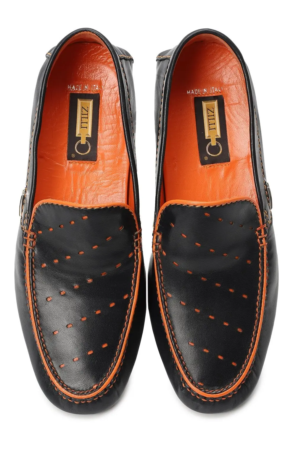 Мокасины Zilli выполнены из мягкой натуральной кожи черного цвета с контрастной отделкой и декоративной перфорацией. Оранжевая прострочка и внутренняя отделка придают модели динамичный акцент, сохраняя при этом элегантность бренда. Гибкая подошва с рифлением обеспечивает комфорт и устойчивость при ходьбе.