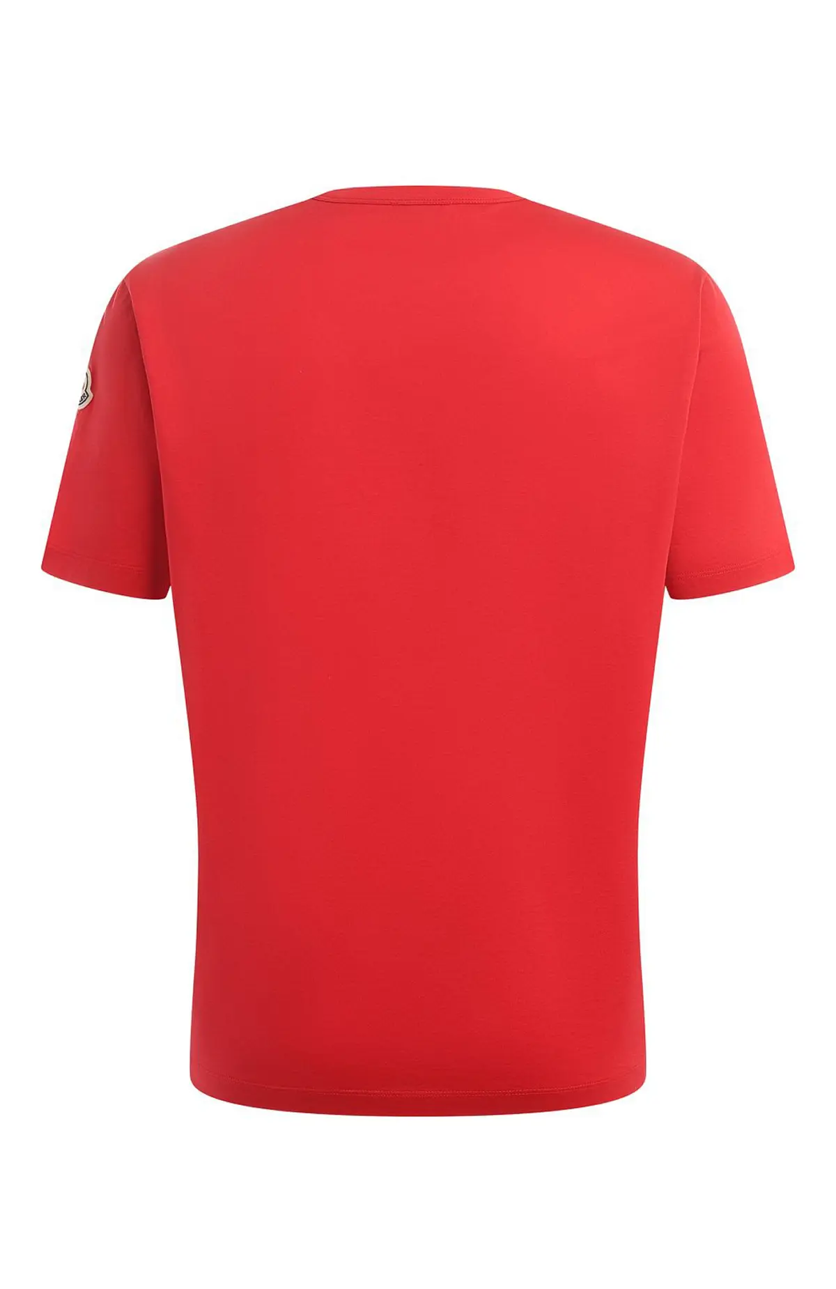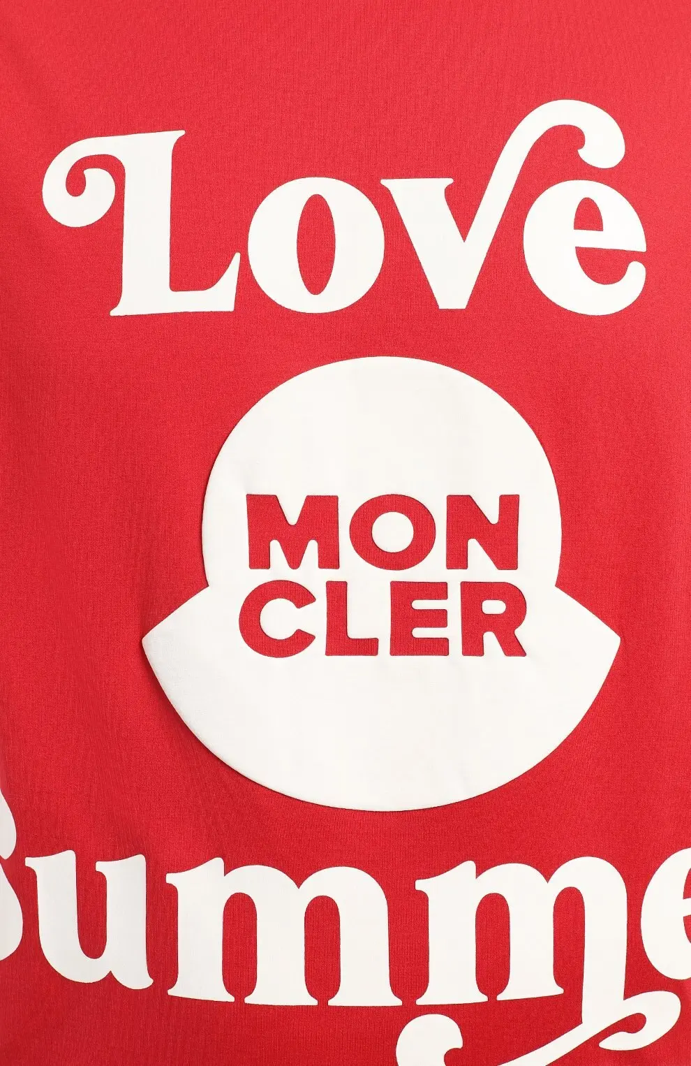 Хлопковая футболка Moncler выполнена из мягкого и лёгкого хлопка, идеально подходящего для летнего сезона. Ярко-красная модель украшена крупным белым принтом с надписью Love Summer и фирменным логотипом бренда. Классический прямой крой и круглый вырез делают изделие универсальным элементом повседневного гардероба с характерным акцентом Moncler.