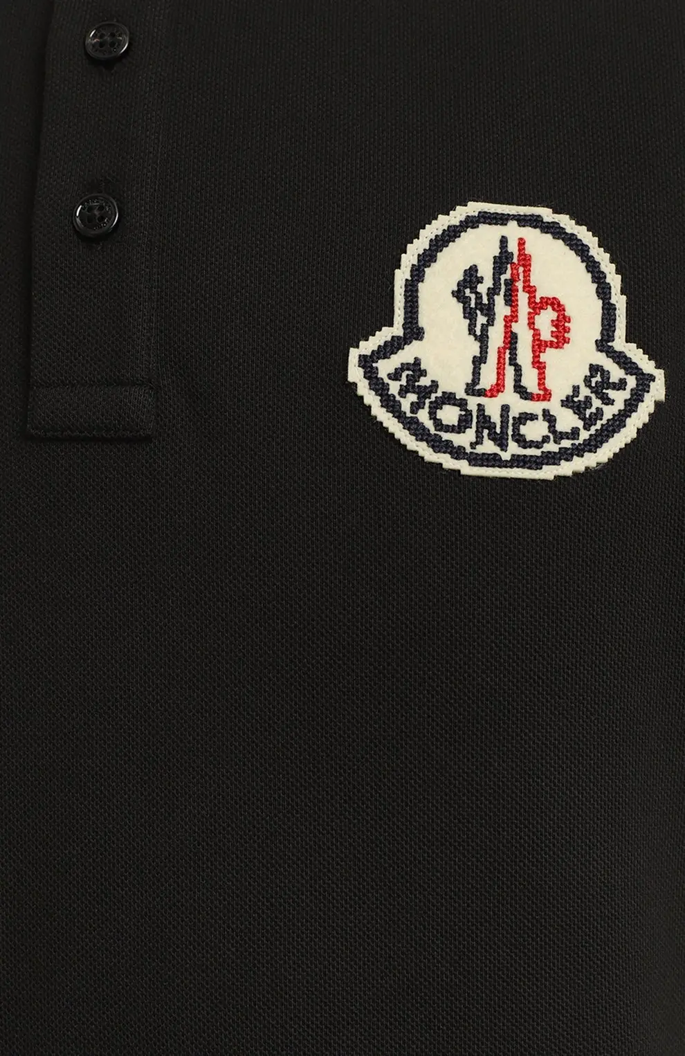 Хлопковое поло Moncler в классическом черном цвете. Модель выполнена из мягкого и дышащего хлопка, имеет традиционный воротник на пуговицах и короткие рукава. На груди размещен объемный фирменный логотип бренда, придающий лаконичному дизайну выразительный акцент.