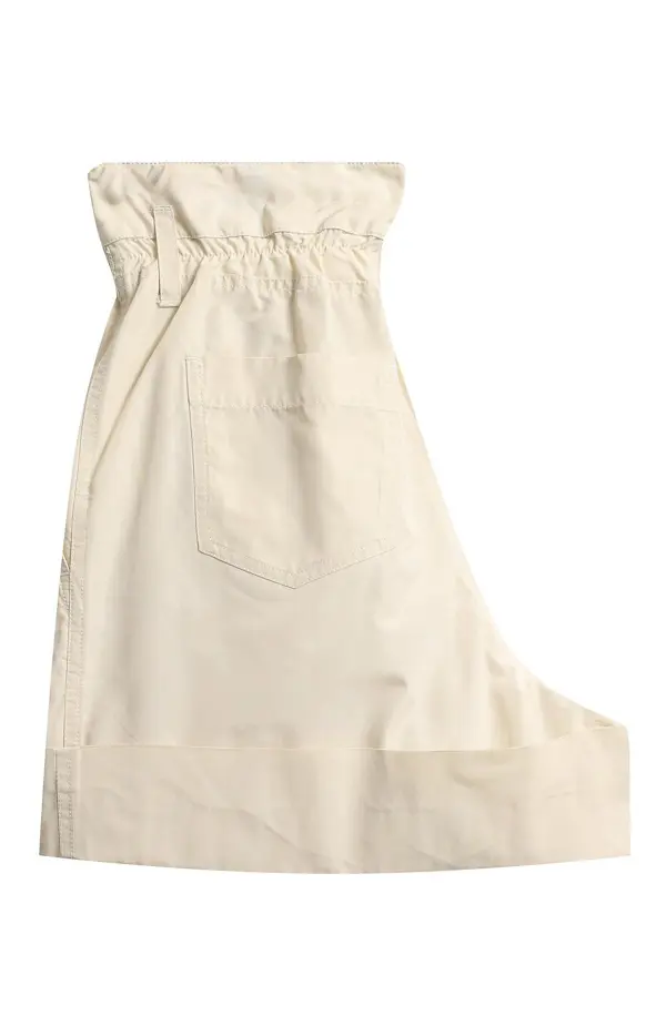 Широкие шорты Moncler выполнены из легкого гладкого нейлона в светлом кремовом оттенке. Модель с завышенной линией талии и мягкими складками создает актуальный силуэт paperbag. Эластичная вставка на поясе и боковые карманы обеспечивают комфорт в повседневной носке.