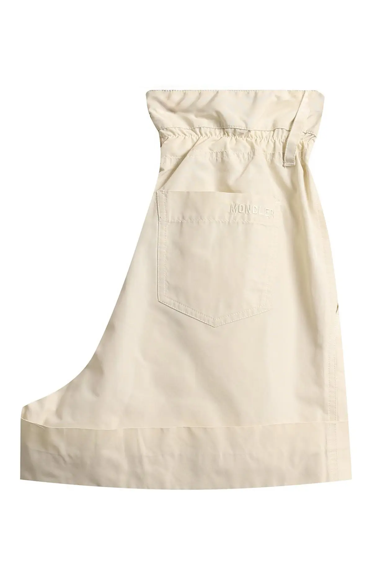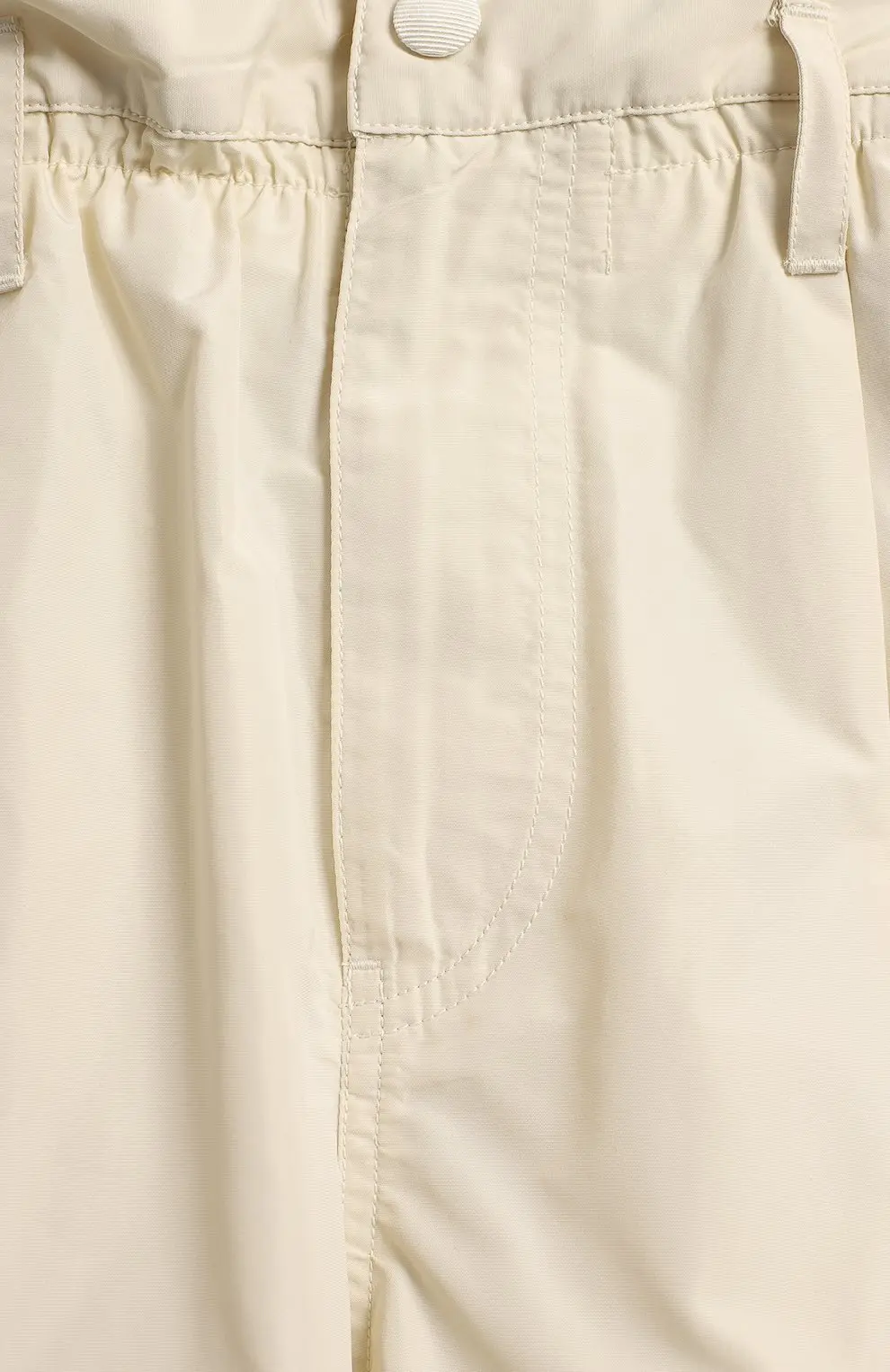 Широкие шорты Moncler выполнены из легкого гладкого нейлона в светлом кремовом оттенке. Модель с завышенной линией талии и мягкими складками создает актуальный силуэт paperbag. Эластичная вставка на поясе и боковые карманы обеспечивают комфорт в повседневной носке.
