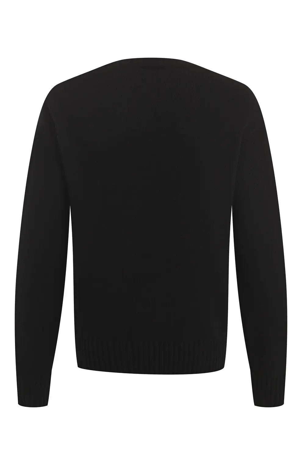 Джемпер Moncler, выполненный из смеси шерсти и кашемира. Классический черный цвет, круглый вырез горловины и аккуратный фасон делают его универсальной и стильной вещью. На рукаве — фирменный логотип бренда. Идеально подходит как для повседневного образа, так и для более строгого стиля.