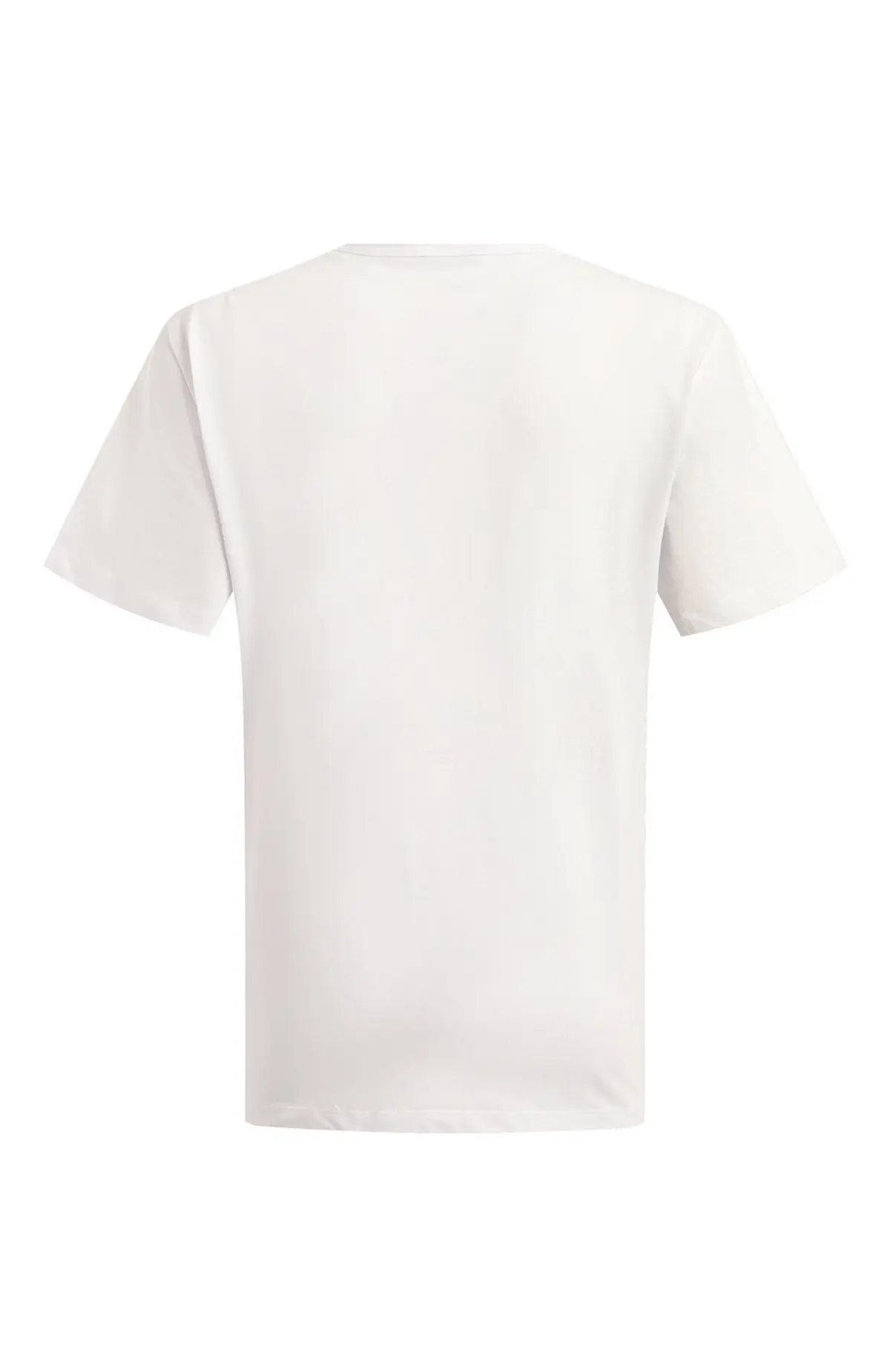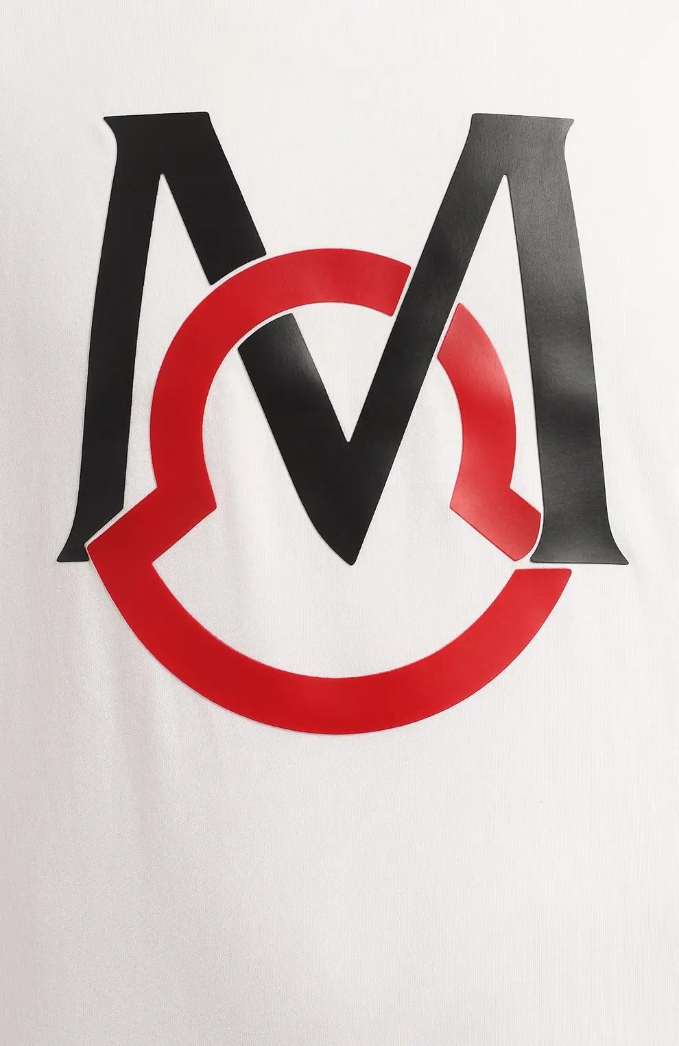Хлопковая футболка Moncler выполнена из мягкого, дышащего хлопка премиального качества. Модель украшена крупным контрастным логотипом бренда в чёрно-красных тонах на груди. Классический крой с круглым вырезом обеспечивает комфорт и универсальность, позволяя сочетать изделие как с повседневными, так и со спортивными образами.