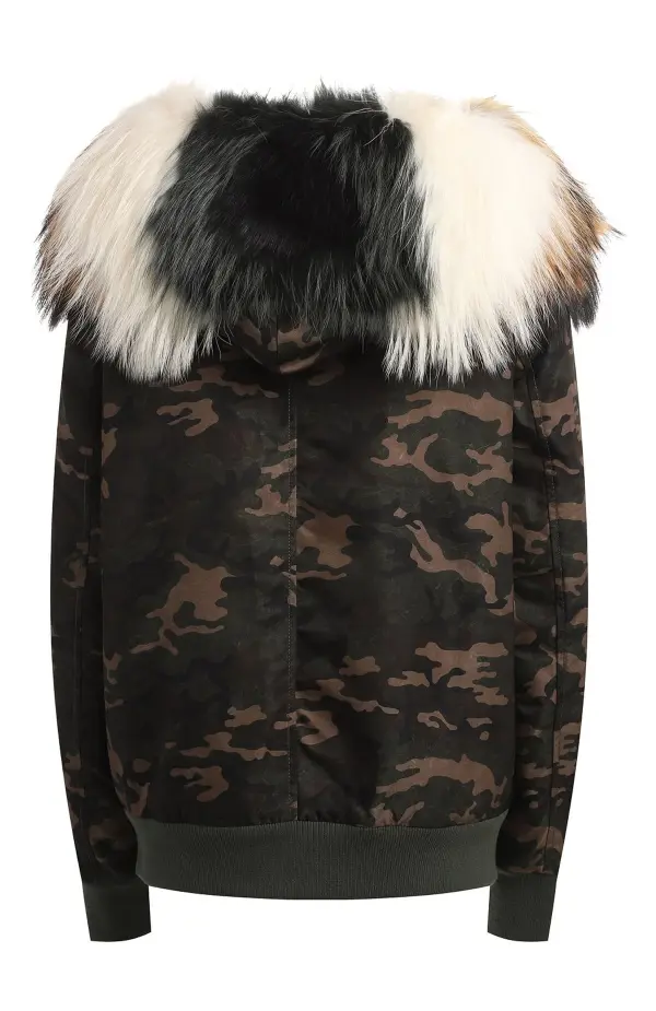 Куртка Mr & Mrs Italy в камуфляжном принте сочетает стиль милитари с элементами роскоши. Модель выполнена из плотного хлопка с водоотталкивающим покрытием и дополнена эффектным воротником из натурального меха. Контрастная оранжевая подкладка придаёт образу динамичность, а классический крой с молнией и боковыми карманами делает изделие практичным и удобным.