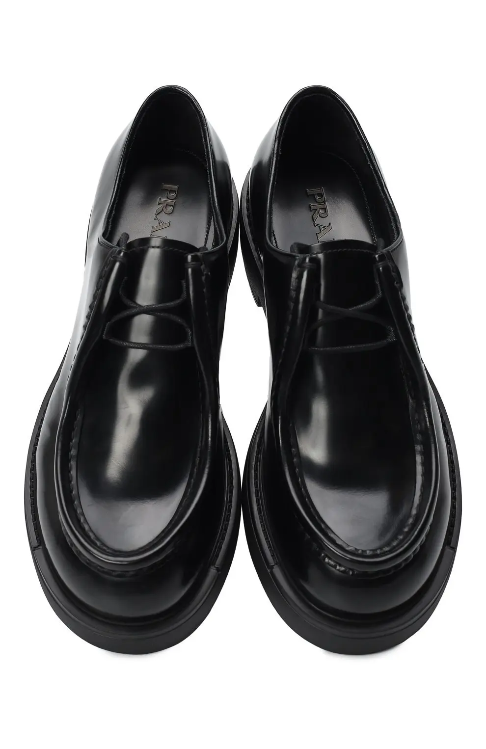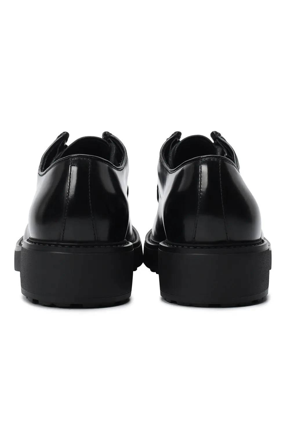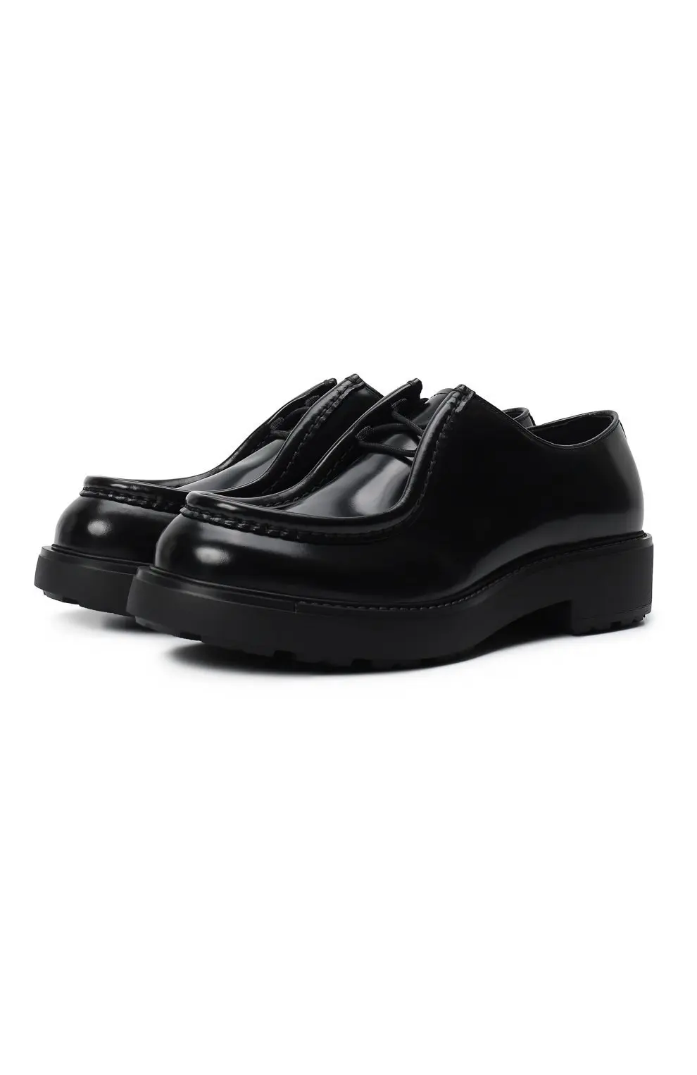 Ботинки Prada Diapason из гладкой черной кожи с лаконичным дизайном. Оснащены прочной рифленой подошвой, которая обеспечивает устойчивость и комфорт.