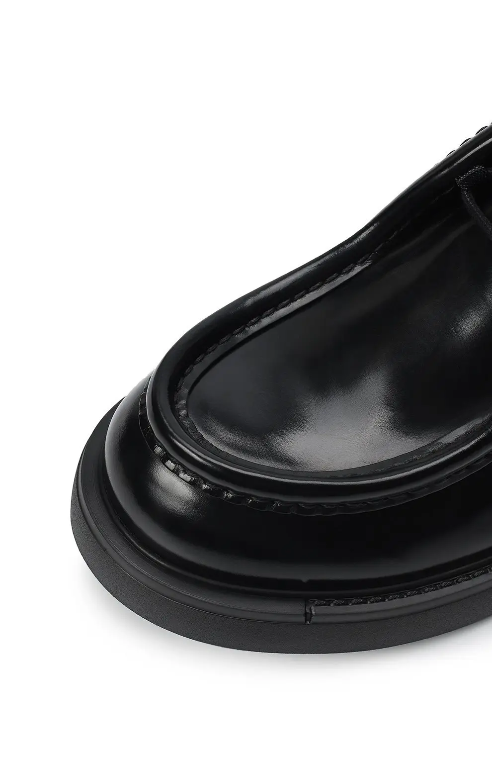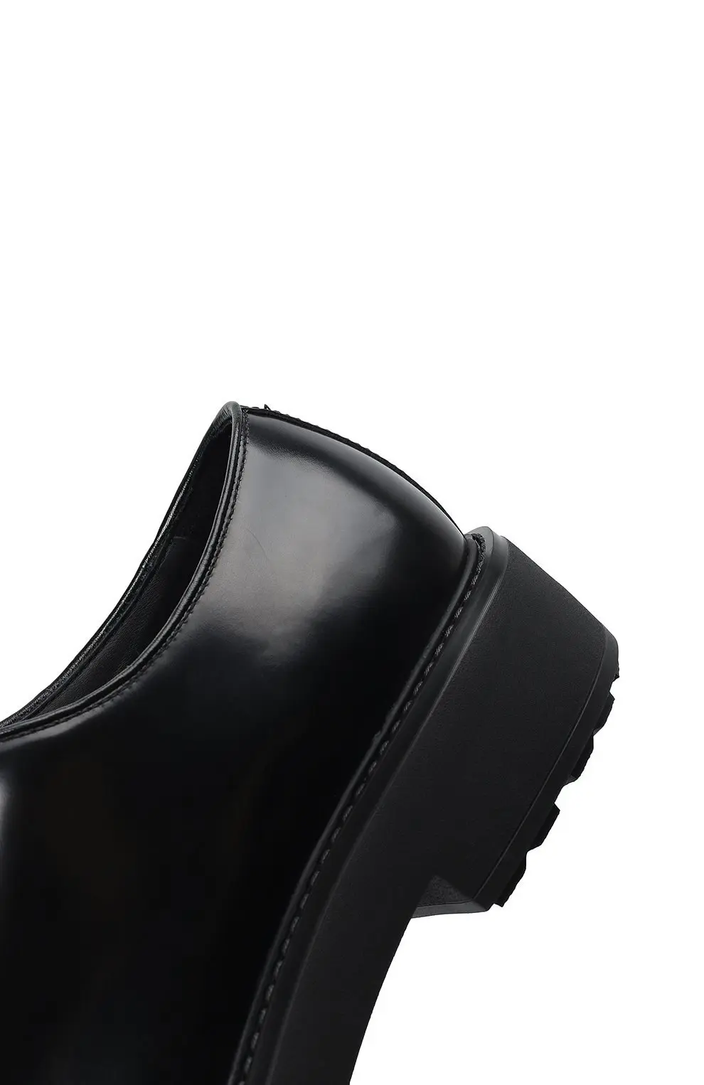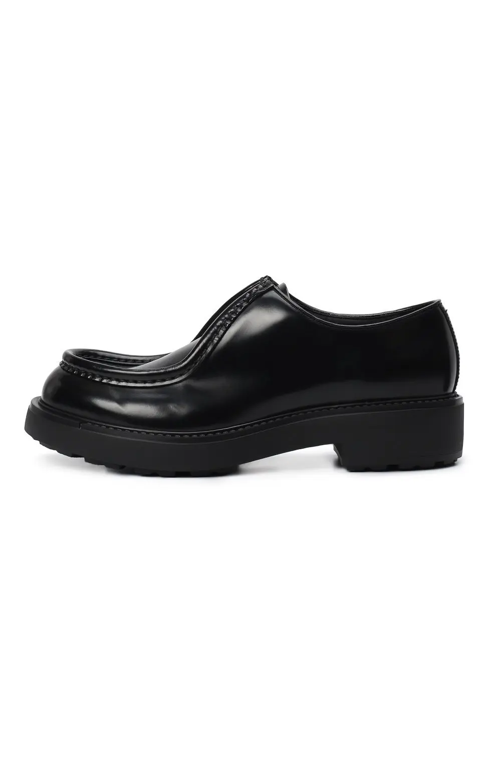 Ботинки Prada Diapason из гладкой черной кожи с лаконичным дизайном. Оснащены прочной рифленой подошвой, которая обеспечивает устойчивость и комфорт.