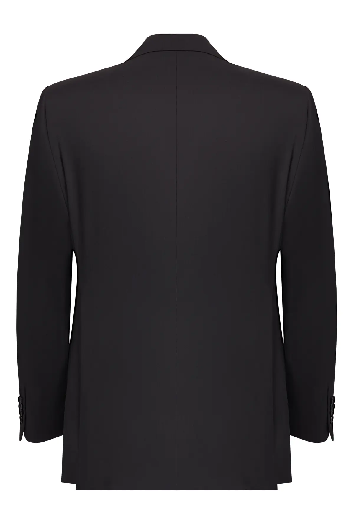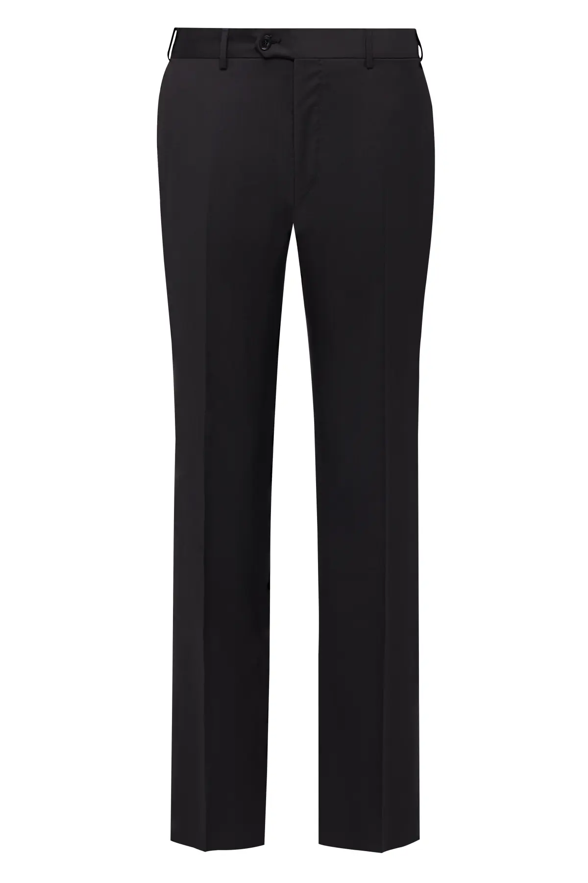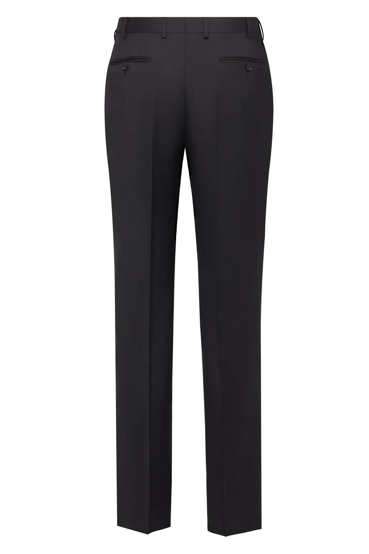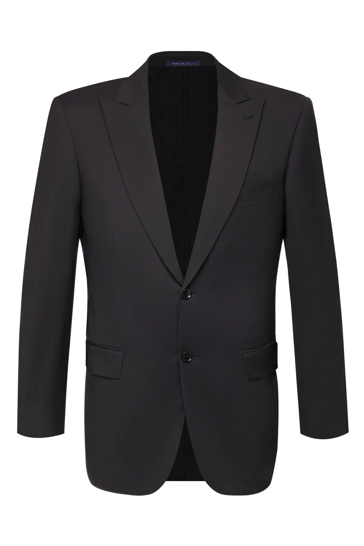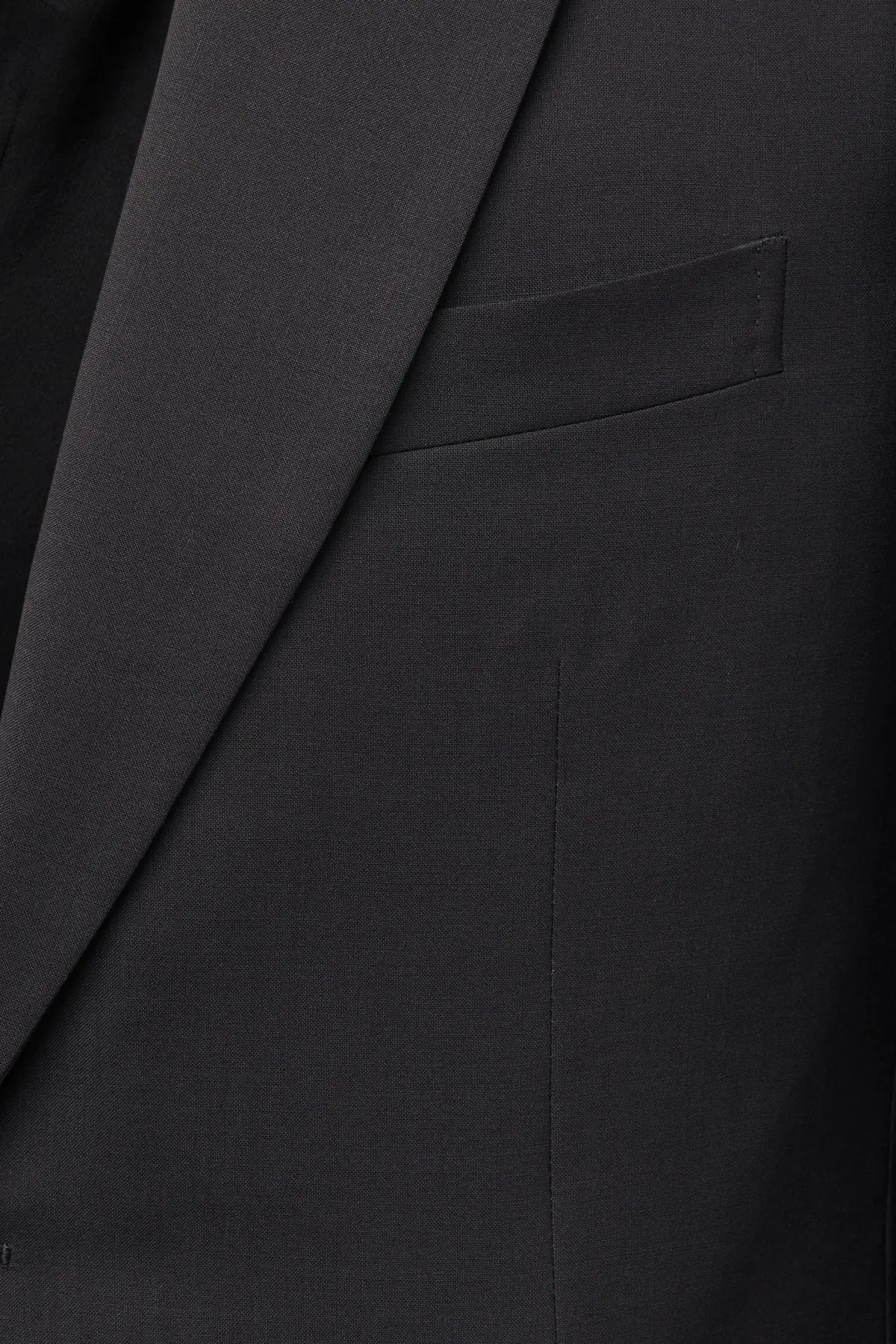 Однотонный темно-графитовый костюм с безупречно строгим силуэтом. Однобортный пиджак на две пуговицы с классическими лацканами и карманами с клапанами дополнен прямыми брюками со стрелками, визуально вытягивающими фигуру. Лаконичная модель для деловых встреч, официальных мероприятий и дресс-кода в консервативном офисе.