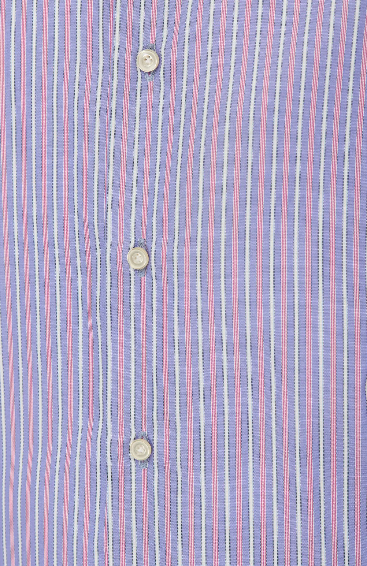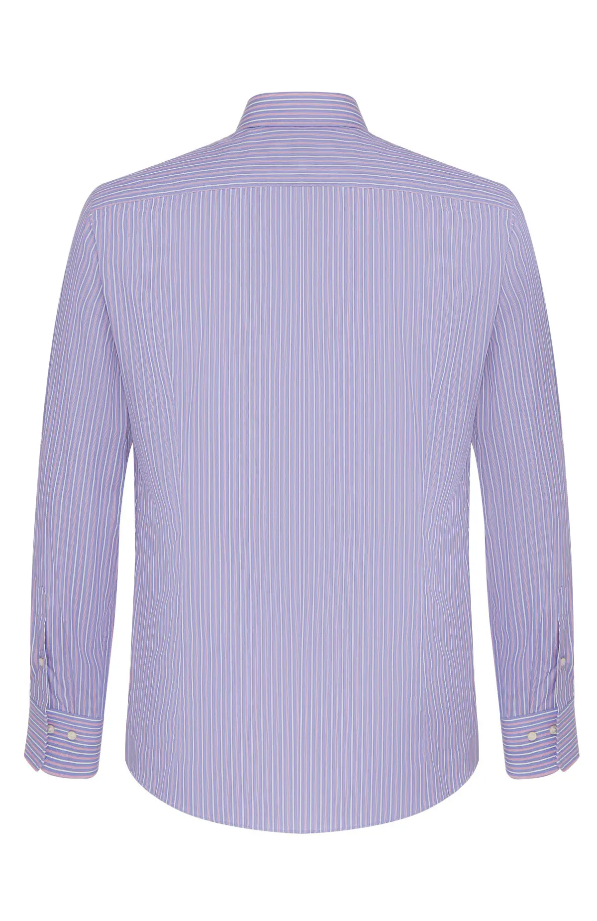Рубашка Pal Zileri с длинными рукавами выполнена из легкого хлопка с тонкой многоцветной вертикальной полоской. Модель прямого кроя дополнена классическим отложным воротником, планкой на пуговицах и манжетами на пуговицах. Универсальный дизайн подойдет как к деловому костюму, так и к более расслабленным комплектам с брюками или джинсами.