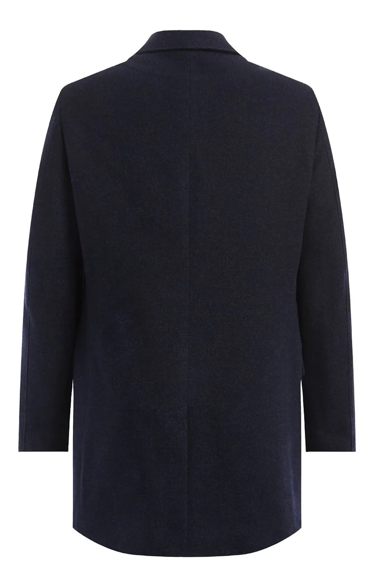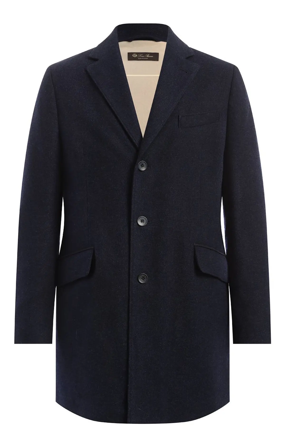 Элегантное пальто Loro Piana, выполненное из смеси кашемира и шерсти в насыщенном тёмно-синем оттенке. Прямой силуэт с классическим лацканом и тремя пуговицами подчёркивает строгий стиль, а накладные карманы с клапанами добавляют практичности. Лёгкая и тёплая ткань обеспечивает комфорт, делая модель универсальной для деловых и повседневных образов.