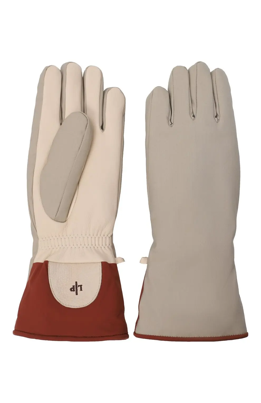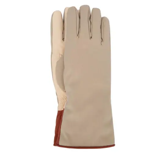 Перчатки Loro Piana выполнены в бежевом цвете с контрастными акцентами у основания. Модель отличается элегантным минималистичным дизайном и функциональностью: прочный внешний материал защищает от холода и ветра, а мягкая внутренняя отделка обеспечивает комфорт при носке. Идеальный аксессуар для создания стильного зимнего образа.