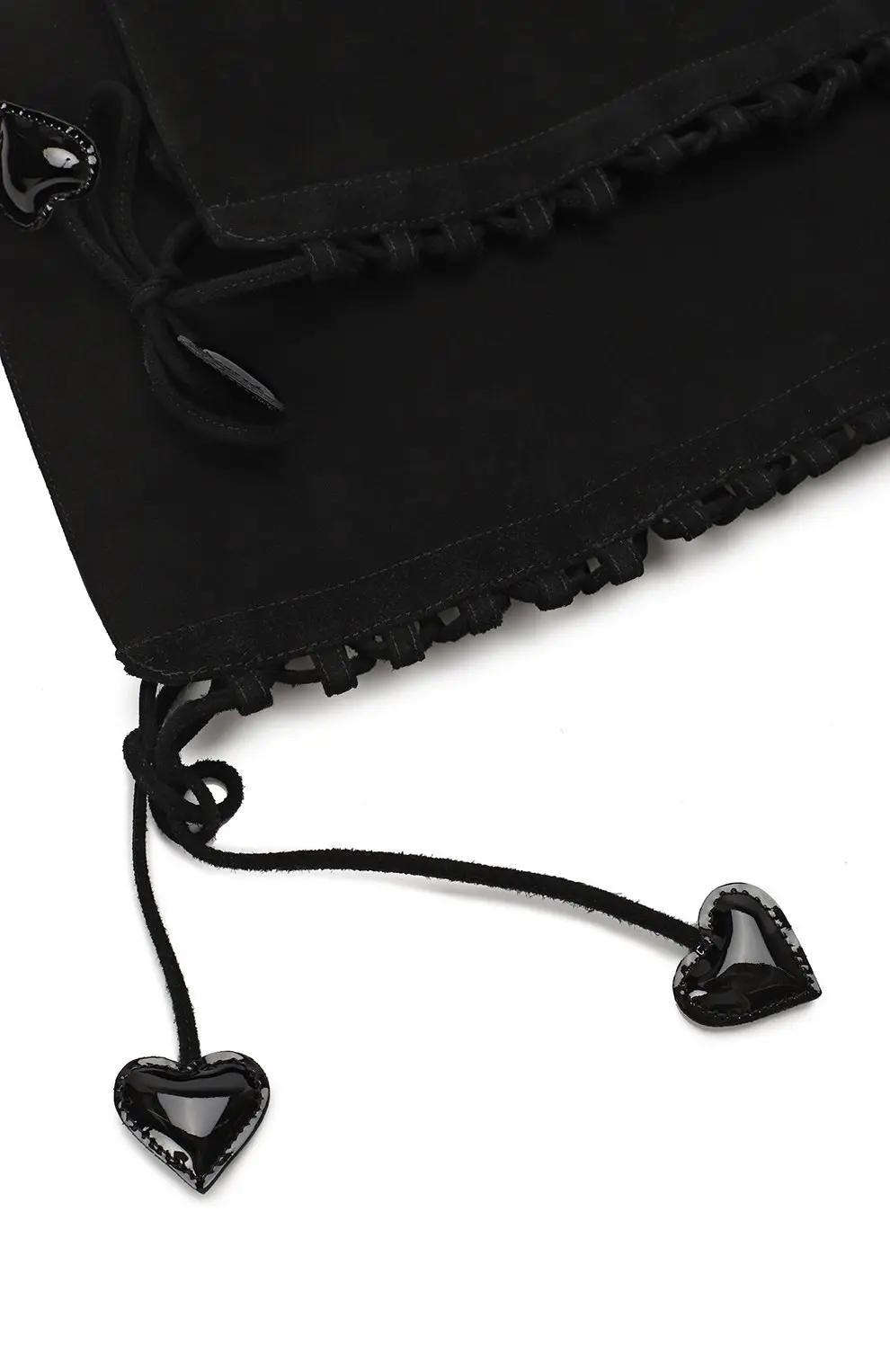 Ботфорты Estia Basic Philipp Plein из мягкой чёрной замши. Модель с открытым мысом и декоративной шнуровкой спереди, завершённой подвесками в форме сердца. Высокий каблук-шпилька подчёркивает эффектный силуэт.
