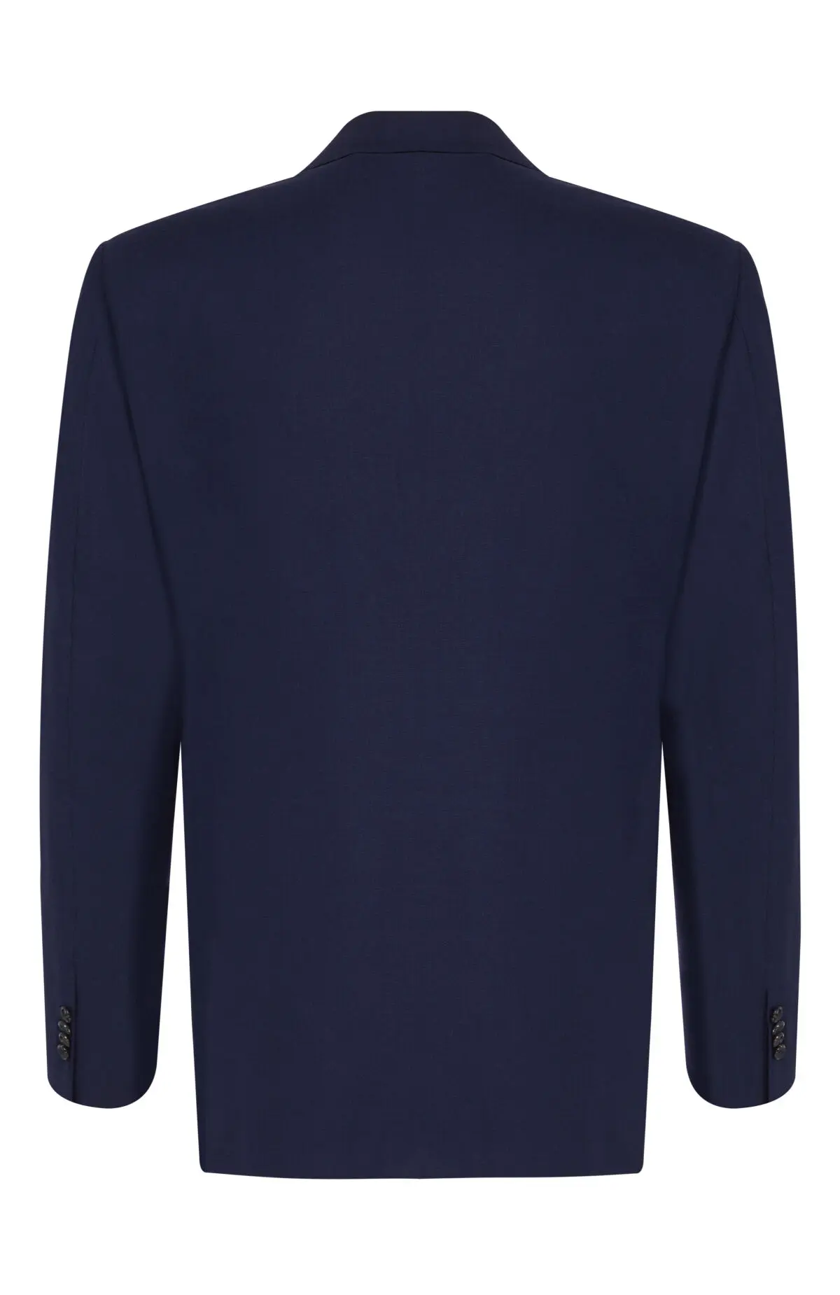 Однобортный пиджак глубокого синего оттенка выполнен в лаконичном классическом стиле. Широкие лацканы, прорезной нагрудный карман и клапаны на боковых карманах подчеркивают строгий силуэт. Универсальная модель легко вписывается как в деловой гардероб, так и в более расслабленные повседневные образы.