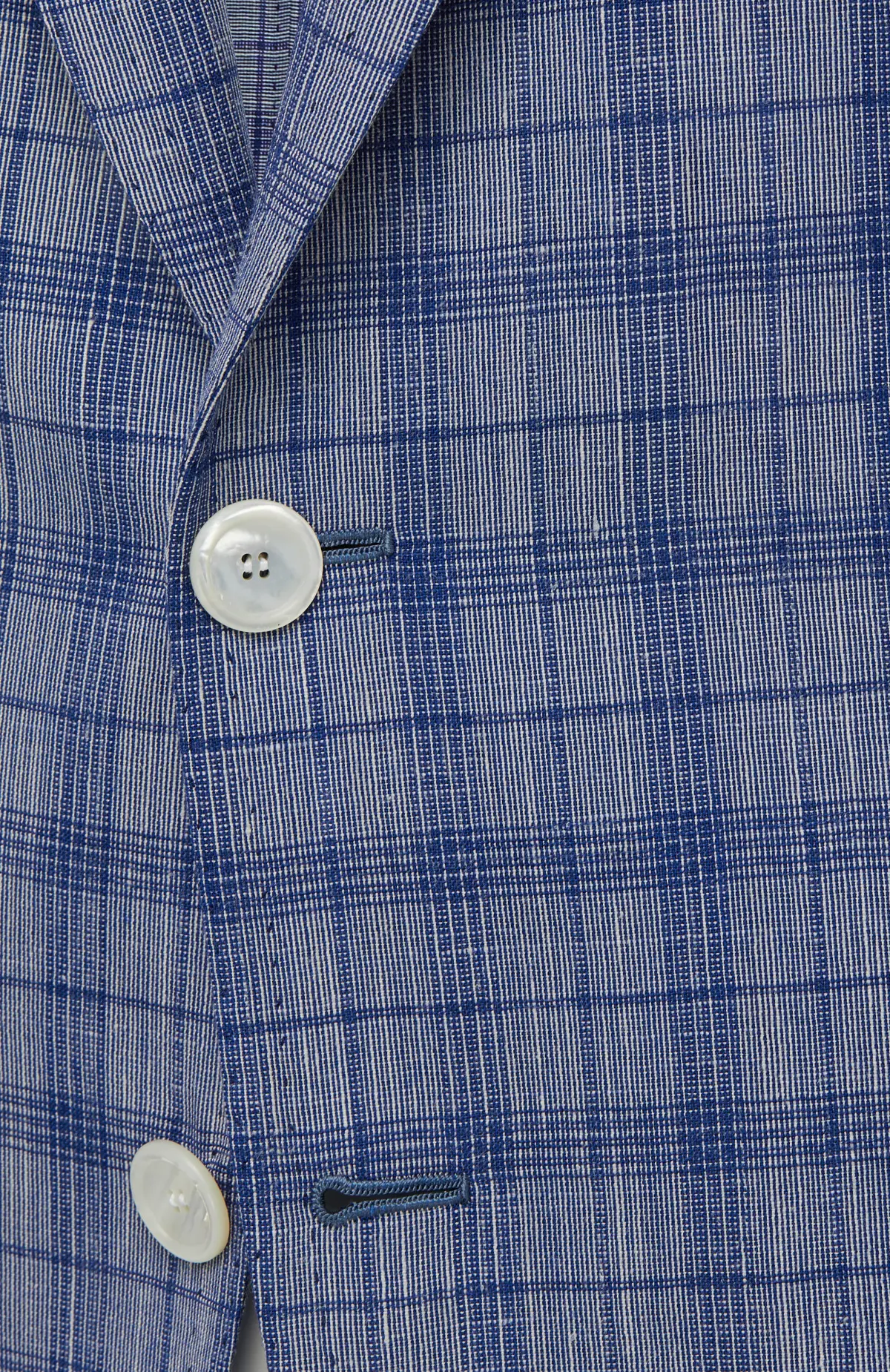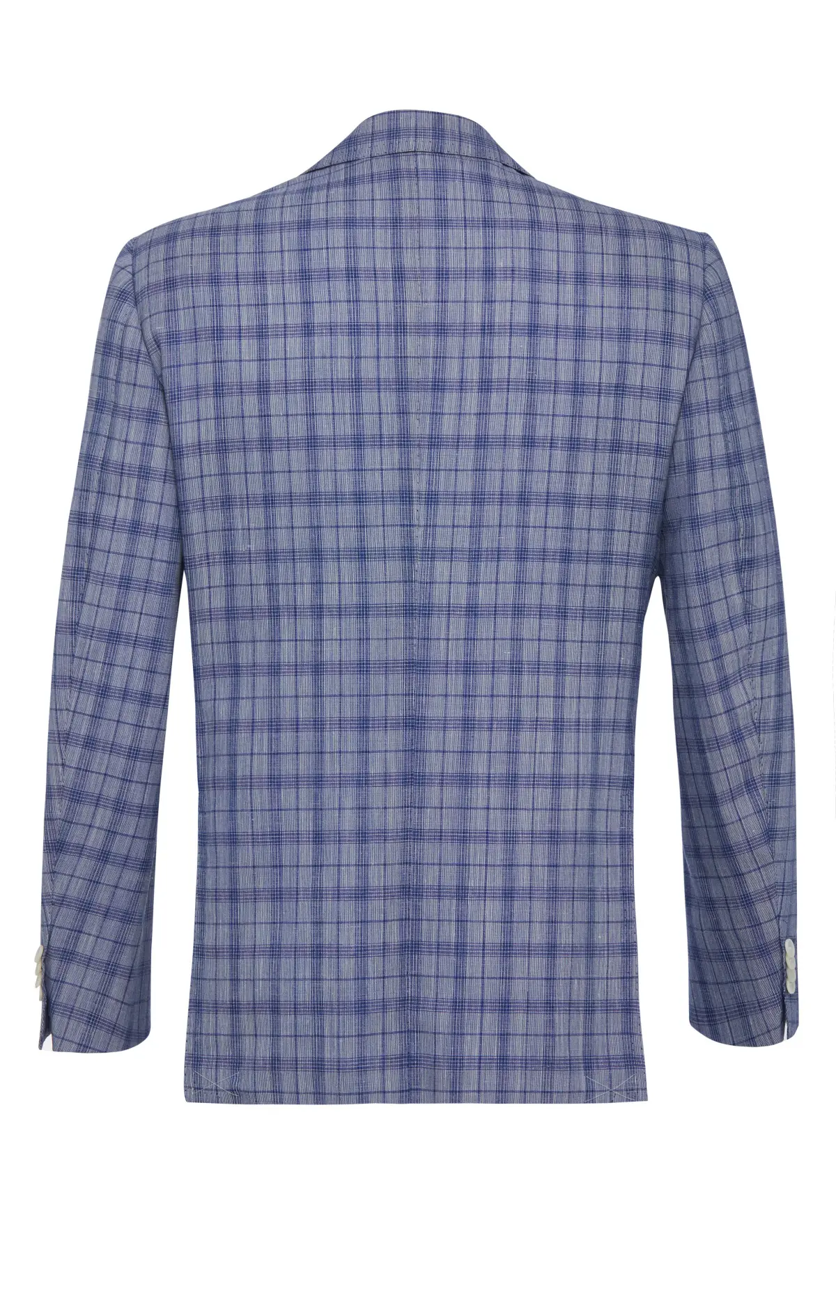 Лёгкий однобортный пиджак в голубой клетке с заострёнными лацканами, накладными карманами и застёжкой на две контрастные пуговицы. Свободная полуприлегающая посадка и тонкая полуподкладка делают модель идеальным вариантом для тёплого сезона и непринуждённого smart-casual образа.