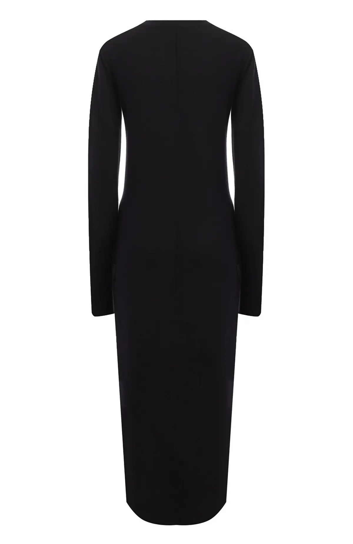 Платье Loro Piana из кашемира и шелка — воплощение лаконичной элегантности и утончённого стиля. Модель выполнена в насыщенном тёмно-синем оттенке и отличается прямым силуэтом с длинными рукавами и округлым вырезом. Декоративные накладные карманы из гладкой кожи подчёркивают минималистичный дизайн и добавляют современный акцент. Мягкая текстура благородных материалов обеспечивает исключительный комфорт и изысканный внешний вид — идеальный выбор для утончённых повседневных и деловых образов.