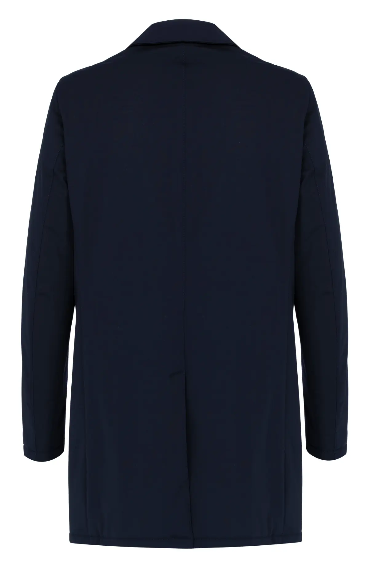 Полупальто выполнено из плотного материала с гладкой матовой поверхностью, устойчивого к ветру и влаге. Модель с классическим отложным воротником и скрытой застёжкой создаёт чистый и сдержанный силуэт. Прямой крой подчёркивает лаконичность и обеспечивает комфортное прилегание. Минималистичный дизайн легко интегрируется в городской гардероб.