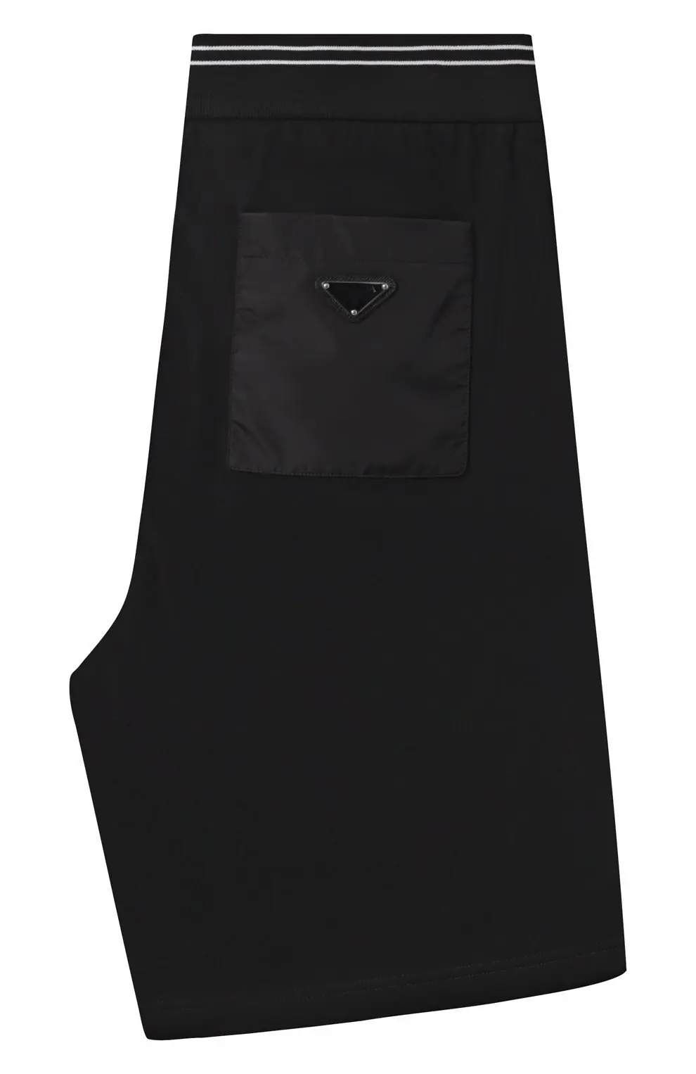 Хлопковые шорты Prada чёрного цвета выполнены в лаконичном минималистичном стиле. Эластичный пояс с контрастными полосами обеспечивает комфортную посадку, а свободный крой подчёркивает расслабленный спортивный силуэт. Универсальная модель подойдёт как для повседневных образов, так и для отдыха.