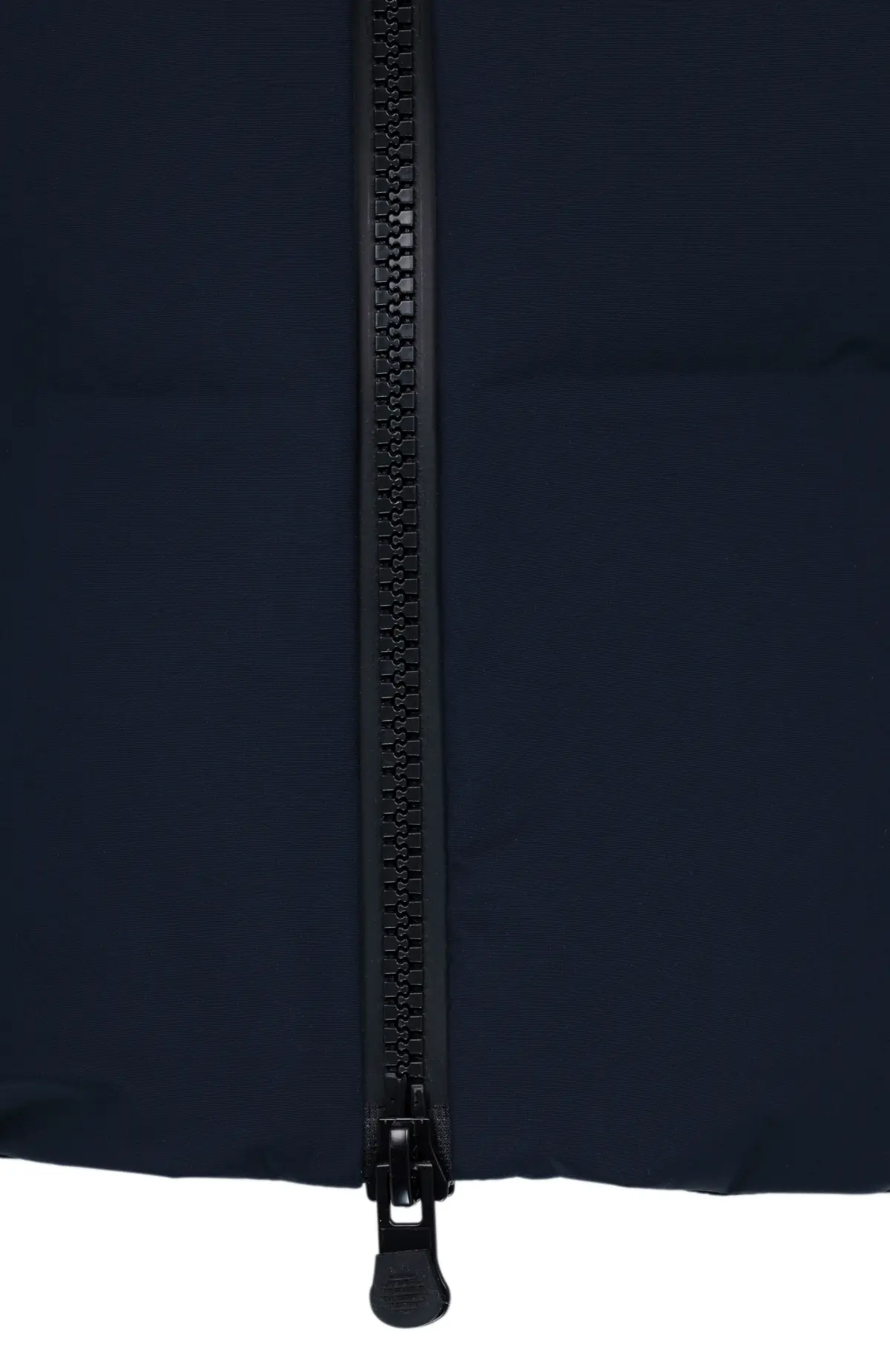 Пуховик выполнен из гладкого материала с плотной фактурой и лёгким матовым эффектом, обеспечивающего защиту от ветра и влаги. Модель дополнена высоким воротником и застёжкой на молнию, что усиливает ощущение уюта и практичности. Лёгкий наполнитель создаёт оптимальное тепло без утяжеления силуэта. Прямой крой подчёркивает лаконичный дизайн и обеспечивает комфортное прилегание.