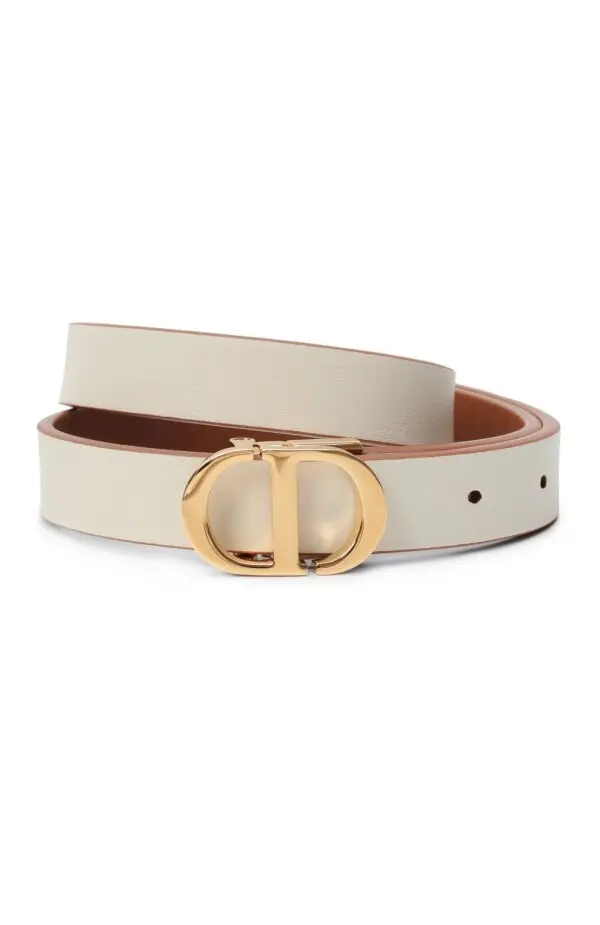 Двусторонний ремень Dior выполнен из гладкой кожи в кремовом и коричневом цветах. Аксессуар украшен культовой пряжкой CD в золотистом тоне, которая придаёт образу утончённость и современный акцент. Универсальный дизайн позволяет легко сочетать ремень как с деловыми, так и с повседневными комплектами.